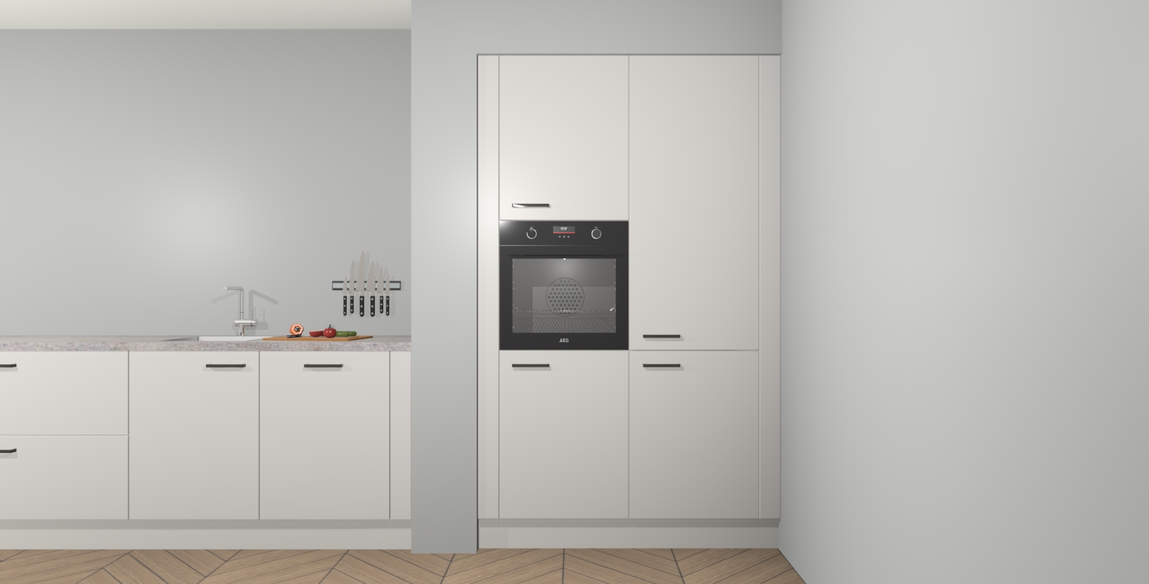 Maak kennis met de Zijdegrijze keuken Calgary - de perfecte aanvulling voor uw moderne keuken! Ervaar tijdloos design, elegantie en een chique uitstraling met onze handgrepen, soft-close deuren en veel opbergruimte. Dit alles wordt aangeboden tegen een vaste lage prijs voor ongeëvenaarde Duitse keukenkwaliteit!