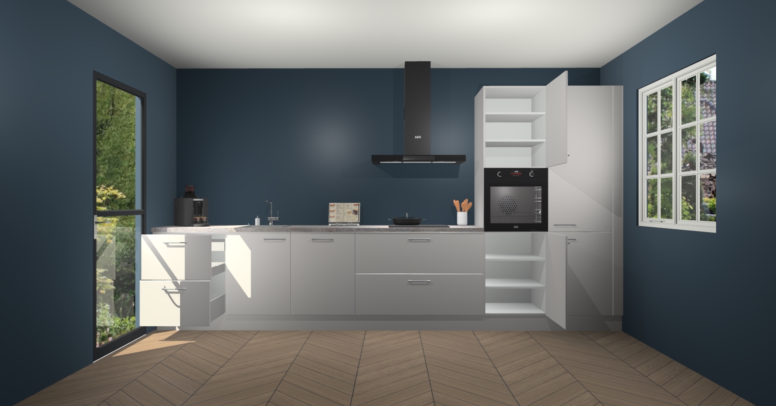De Zijdegrijze keuken Leuven is de perfecte mix van modern en tijdloos design. Met zijn prachtige glazen deuren op de bovenkastjes voegt hij echt iets speciaals en unieks toe aan elke keuken. En met vijf ingebouwde apparaten inbegrepen - een oven, inductiekookplaat, afzuigkap, vaatwasser en koelkast - kunt u deze keuken echt helemaal van uzelf maken! U kunt na bestelling ook upgraden naar AEG voor een nog hogere kwaliteitservaring.