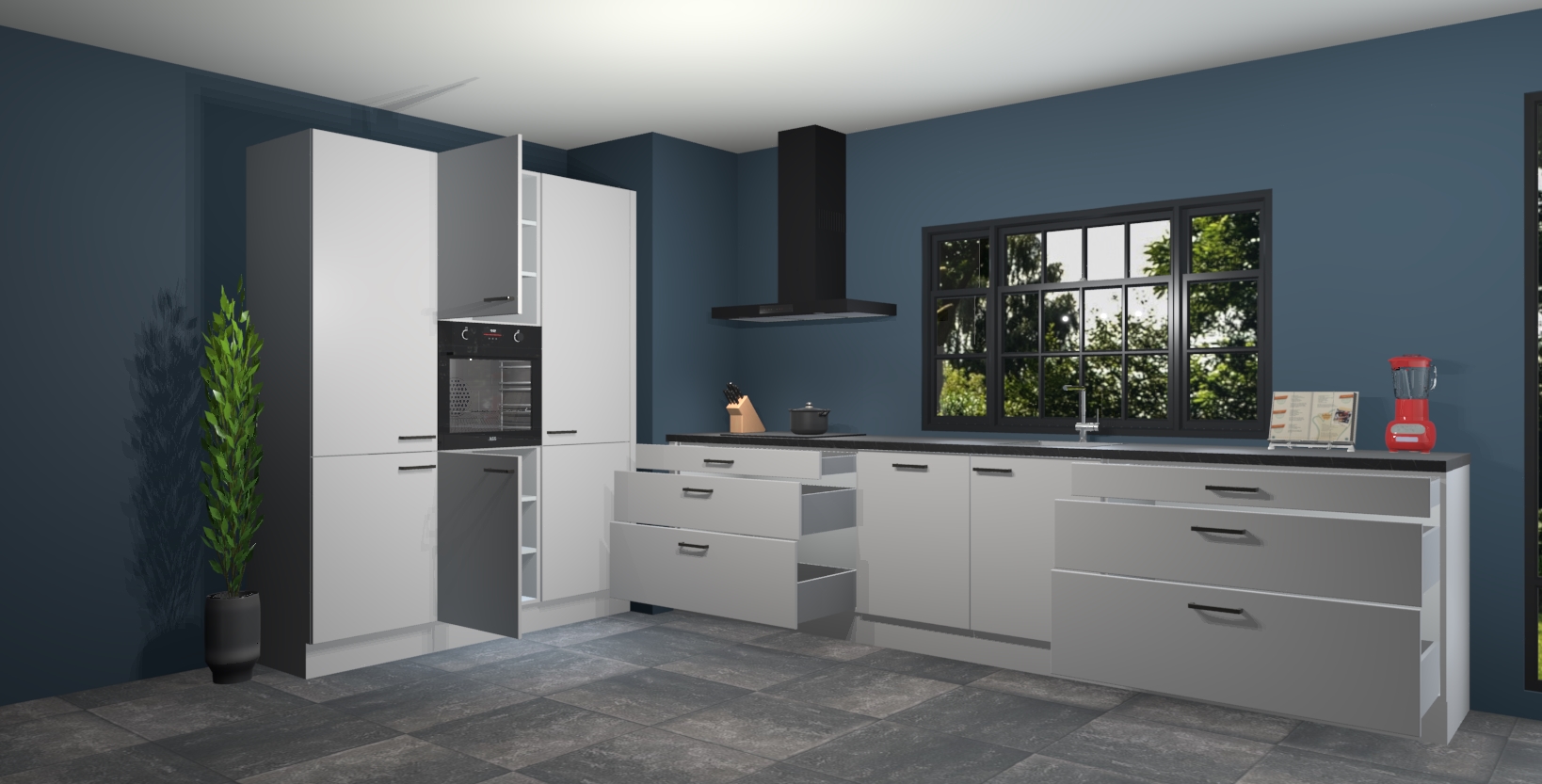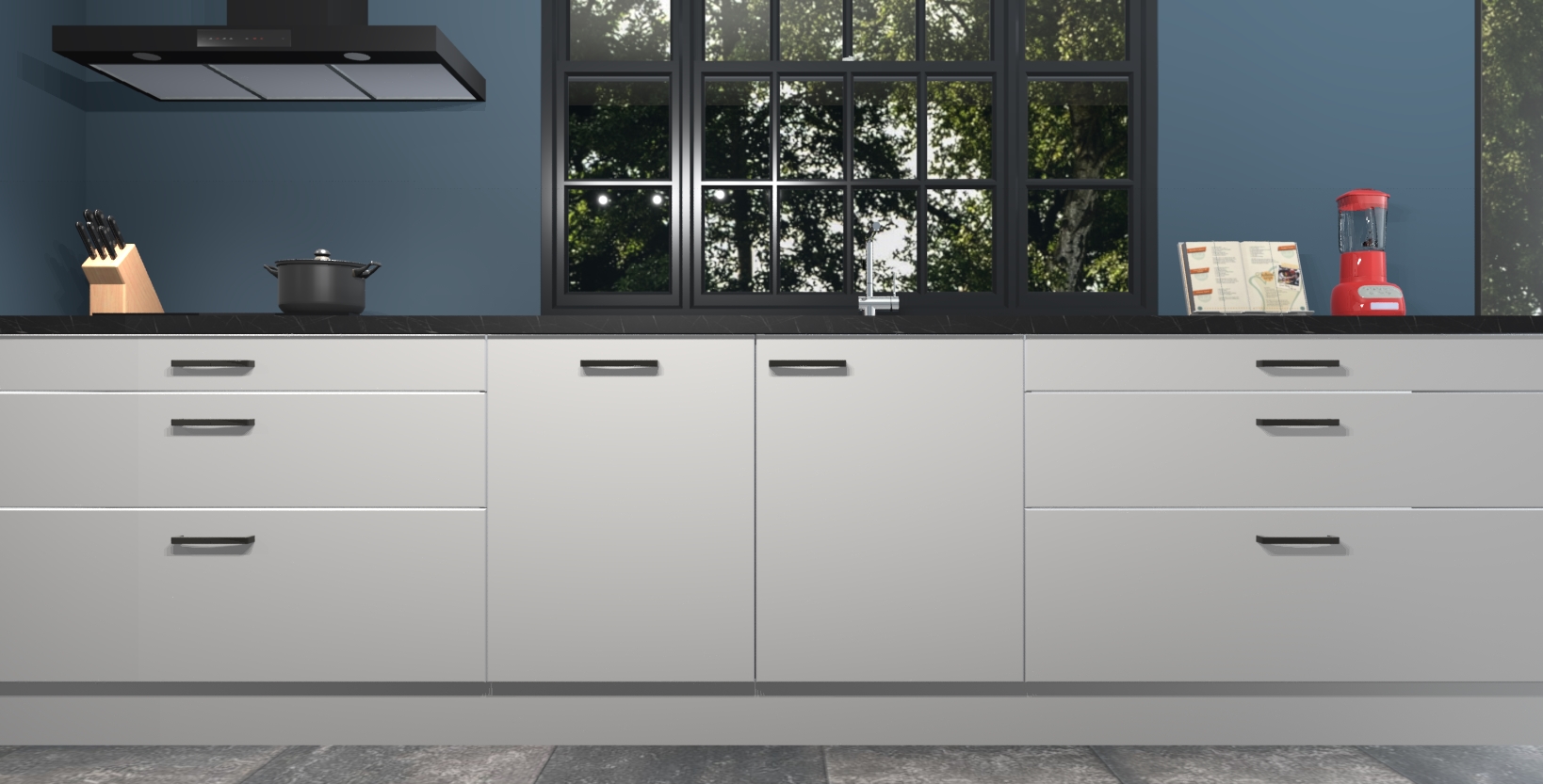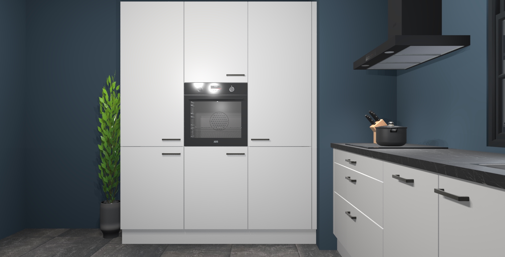 De softclose deuren openen en sluiten is ook heel eenvoudig - geniet van een moeiteloze keukenervaring, zelfs als er kinderen rondlopen. Voor extra gemak bij het plaatsen van uw bestelling bieden we ook een upgrade naar een kookplaat met geïntegreerde afzuiging.