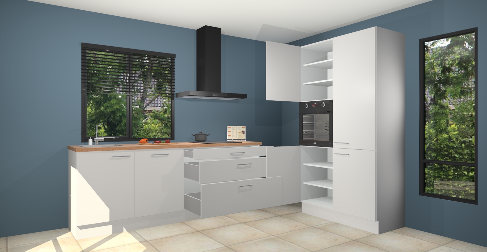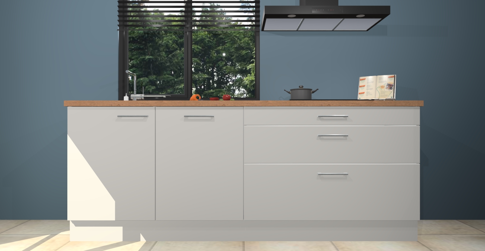 De setting is compleet gemaakt door de vijf inbouwapparaten: wanneer u gaat bestellen kunt u upgraden naar AEG-apparaten als oven, inductieplaat, afzuigkap, vaatwasser en koelkast. Kiest u voor onze Zijdegrijze keuken Monaco, dan weet u zeker dat u te maken heeft met Duitse kwaliteit. Bovendien is er altijd sprake van een lage prijs en profiteren we aantrekkelijk leveringstermijn: die bedraagt slechts 7 weken ! Om het extra makkelijk te maken worden de keukenkasten reeds voorgemonteerd geleverd.