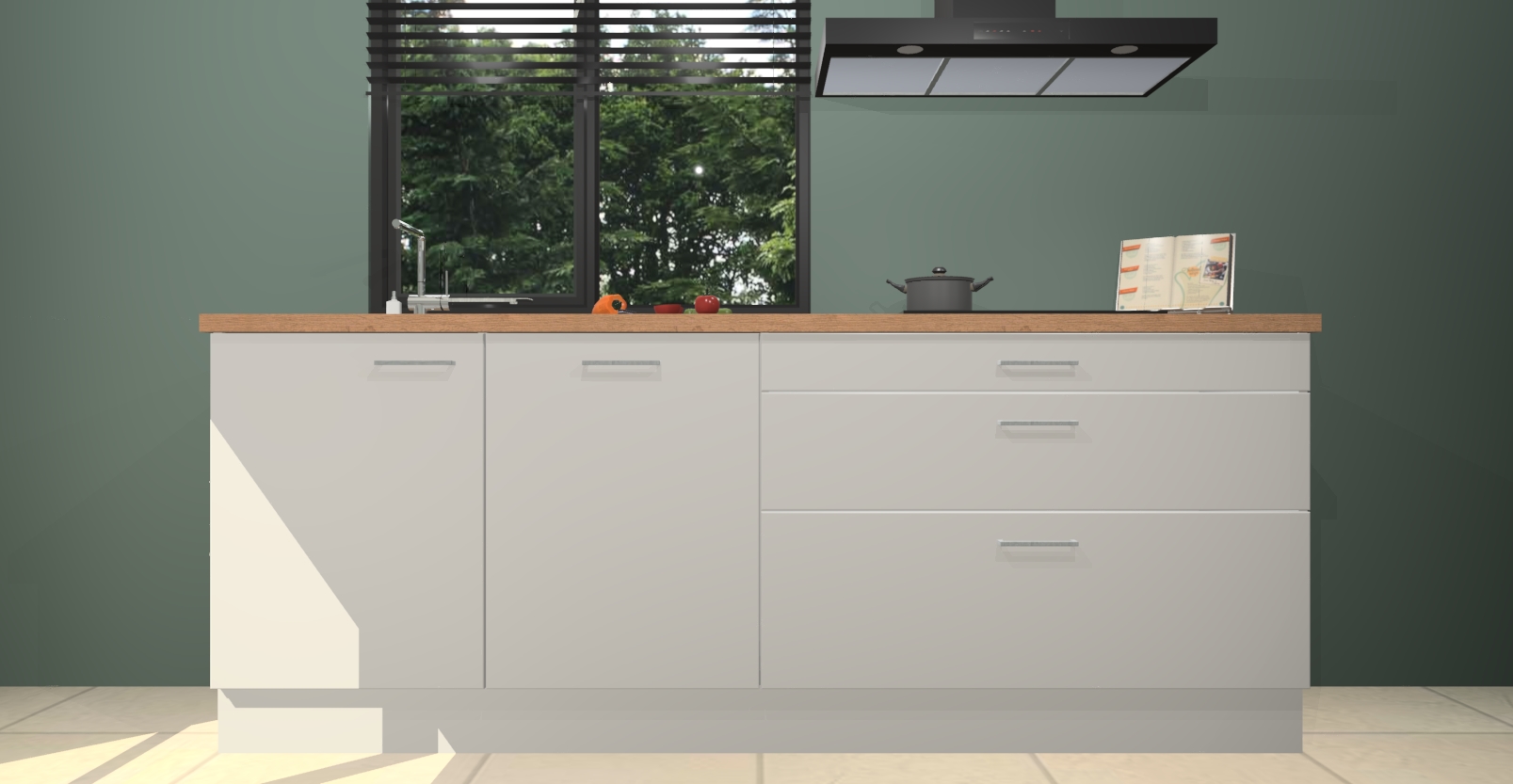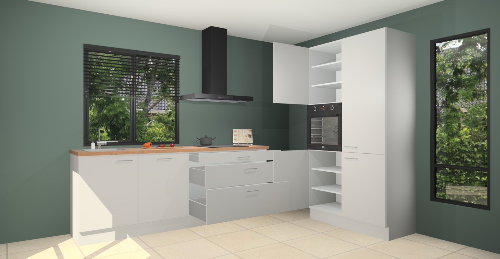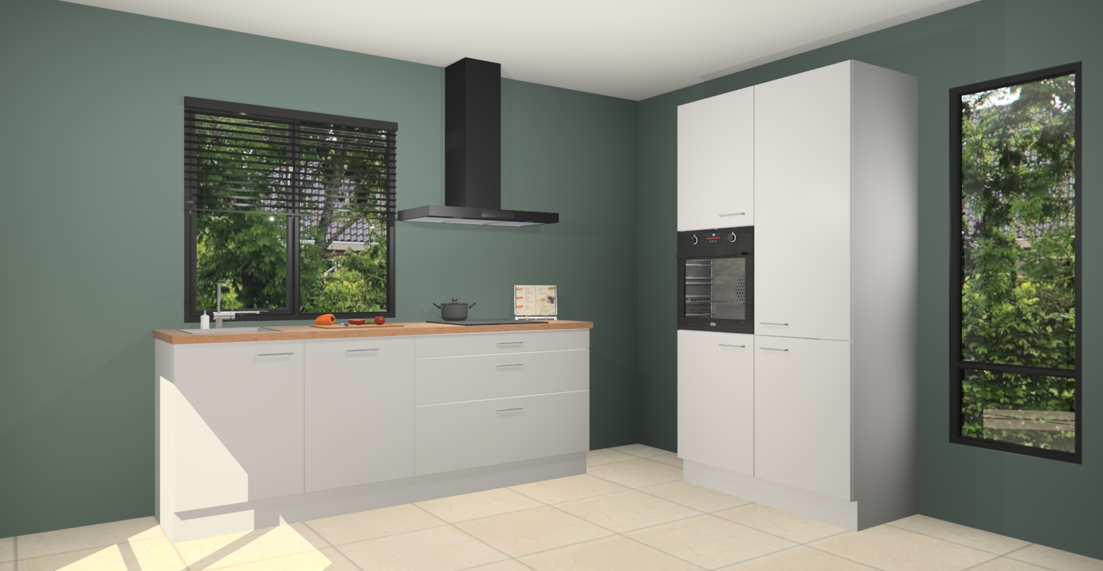 De setting is compleet gemaakt door de vijf inbouwapparaten: wanneer u gaat bestellen kunt u upgraden naar AEG-apparaten als oven, inductieplaat, afzuigkap, vaatwasser en koelkast. Kiest u voor onze Zijdegrijze keuken Monaco, dan weet u zeker dat u te maken heeft met Duitse kwaliteit. Bovendien is er altijd sprake van een lage prijs en profiteren we aantrekkelijk leveringstermijn: die bedraagt slechts 7 weken ! Om het extra makkelijk te maken worden de keukenkasten reeds voorgemonteerd geleverd.