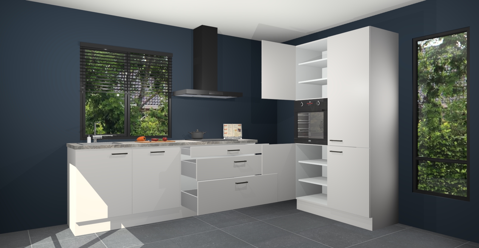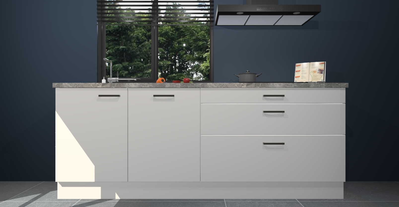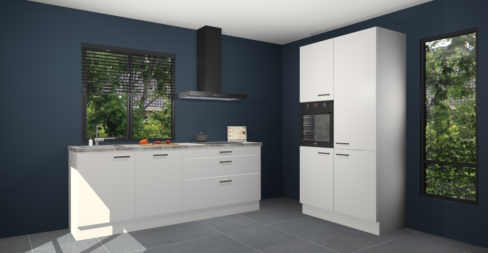 De setting is compleet gemaakt door de vijf inbouwapparaten: wanneer u gaat bestellen kunt u upgraden naar AEG-apparaten als oven, inductieplaat, afzuigkap, vaatwasser en koelkast. Kiest u voor onze Zijdegrijze keuken Monaco, dan weet u zeker dat u te maken heeft met Duitse kwaliteit. Bovendien is er altijd sprake van een lage prijs en profiteren we aantrekkelijk leveringstermijn: die bedraagt slechts 7 weken ! Om het extra makkelijk te maken worden de keukenkasten reeds voorgemonteerd geleverd.