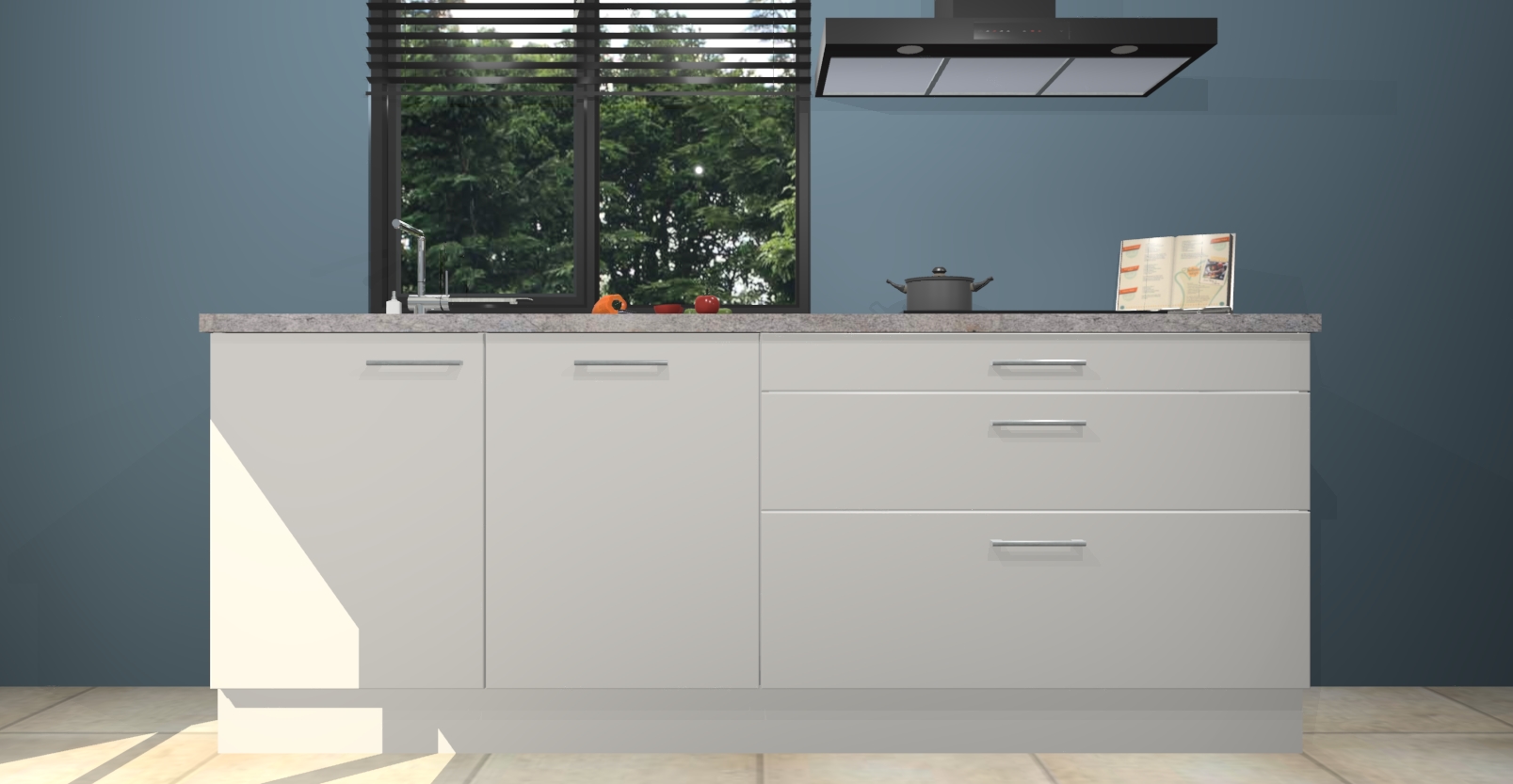 De setting is compleet gemaakt door de vijf inbouwapparaten: wanneer u gaat bestellen kunt u upgraden naar AEG-apparaten als oven, inductieplaat, afzuigkap, vaatwasser en koelkast. Kiest u voor onze Zijdegrijze keuken Monaco, dan weet u zeker dat u te maken heeft met Duitse kwaliteit. Bovendien is er altijd sprake van een lage prijs en profiteren we aantrekkelijk leveringstermijn: die bedraagt slechts 7 weken ! Om het extra makkelijk te maken worden de keukenkasten reeds voorgemonteerd geleverd.