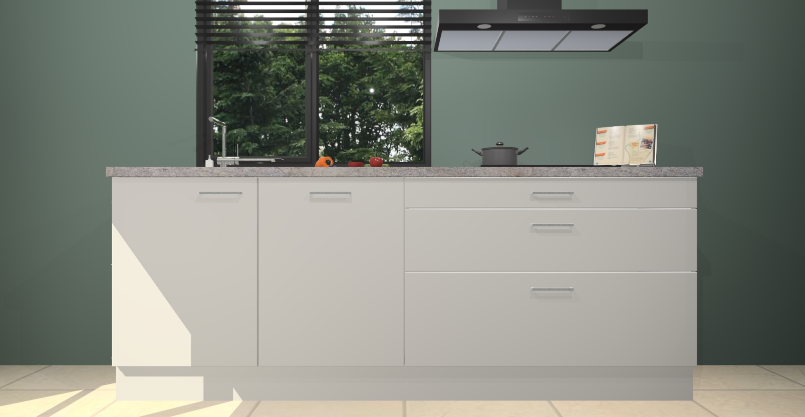 De setting is compleet gemaakt door de vijf inbouwapparaten: wanneer u gaat bestellen kunt u upgraden naar AEG-apparaten als oven, inductieplaat, afzuigkap, vaatwasser en koelkast. Kiest u voor onze Zijdegrijze keuken Monaco, dan weet u zeker dat u te maken heeft met Duitse kwaliteit. Bovendien is er altijd sprake van een lage prijs en profiteren we aantrekkelijk leveringstermijn: die bedraagt slechts 7 weken ! Om het extra makkelijk te maken worden de keukenkasten reeds voorgemonteerd geleverd.