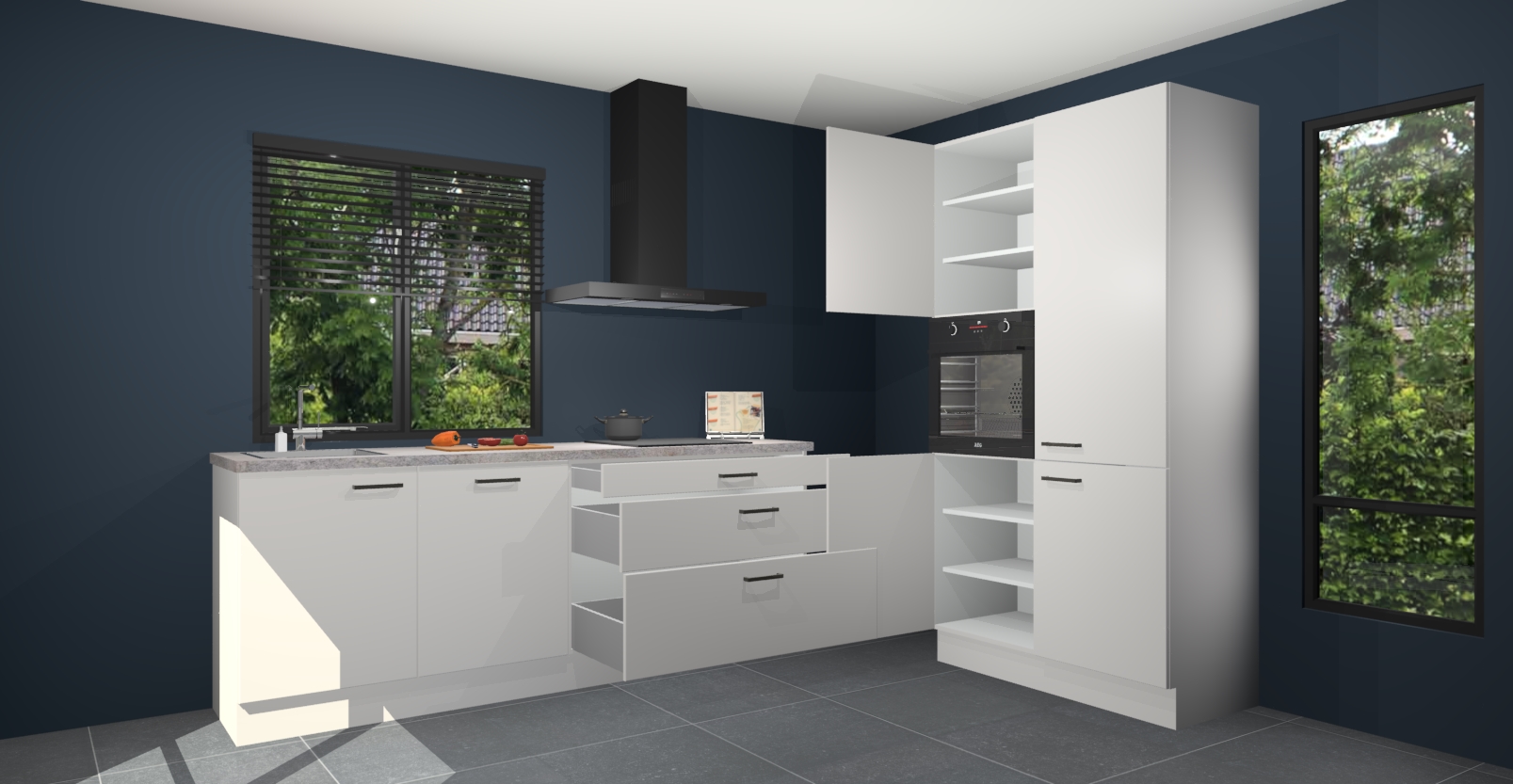 De setting is compleet gemaakt door de vijf inbouwapparaten: wanneer u gaat bestellen kunt u upgraden naar AEG-apparaten als oven, inductieplaat, afzuigkap, vaatwasser en koelkast. Kiest u voor onze Zijdegrijze keuken Monaco, dan weet u zeker dat u te maken heeft met Duitse kwaliteit. Bovendien is er altijd sprake van een lage prijs en profiteren we aantrekkelijk leveringstermijn: die bedraagt slechts 7 weken ! Om het extra makkelijk te maken worden de keukenkasten reeds voorgemonteerd geleverd.