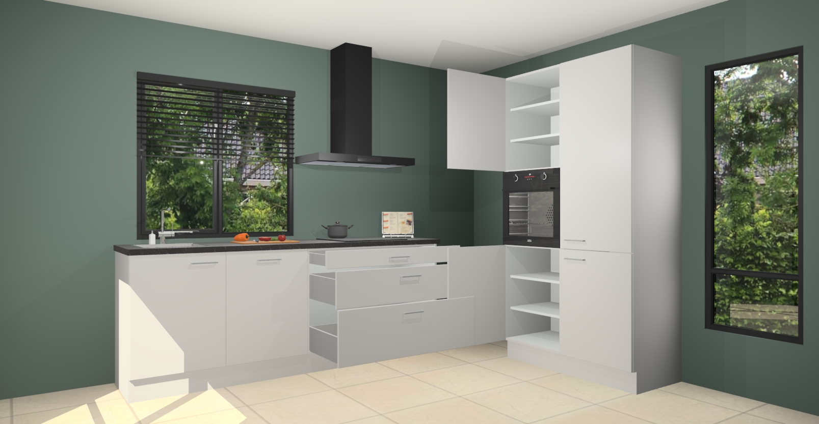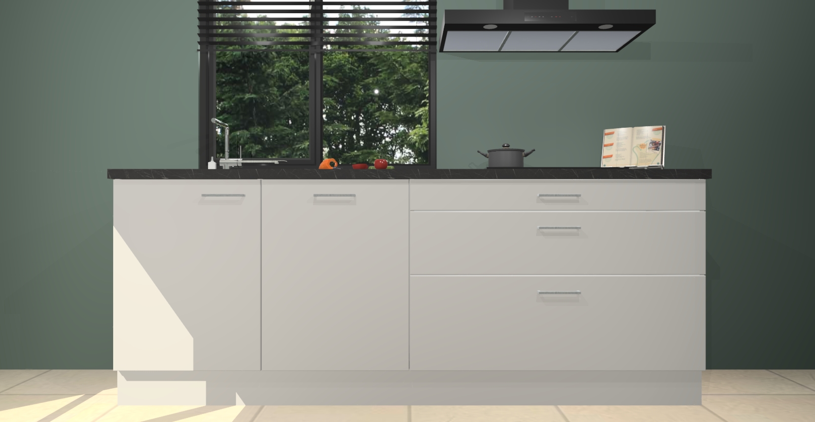 De setting is compleet gemaakt door de vijf inbouwapparaten: wanneer u gaat bestellen kunt u upgraden naar AEG-apparaten als oven, inductieplaat, afzuigkap, vaatwasser en koelkast. Kiest u voor onze Zijdegrijze keuken Monaco, dan weet u zeker dat u te maken heeft met Duitse kwaliteit. Bovendien is er altijd sprake van een lage prijs en profiteren we aantrekkelijk leveringstermijn: die bedraagt slechts 7 weken ! Om het extra makkelijk te maken worden de keukenkasten reeds voorgemonteerd geleverd.