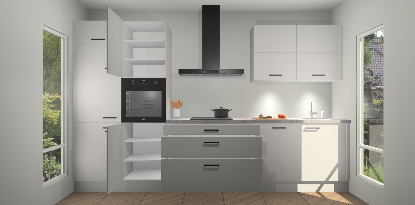 Inclusief plinten, stelpoten en werkblad