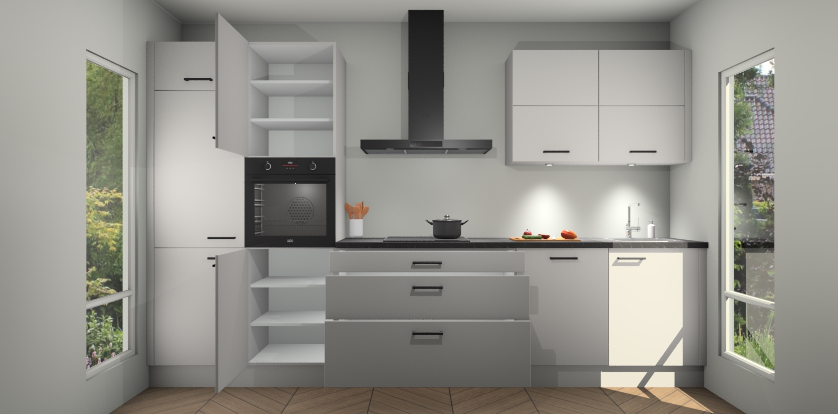 Inclusief plinten, stelpoten en werkblad