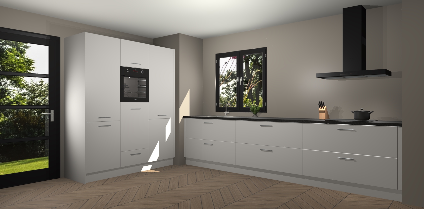 De softclose deuren openen en sluiten is ook heel eenvoudig - geniet van een moeiteloze keukenervaring, zelfs als er kinderen rondlopen. Voor extra gemak bij het plaatsen van uw bestelling bieden we ook een upgrade naar een kookplaat met geïntegreerde afzuiging.