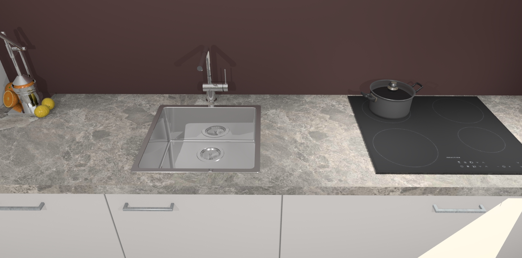 - Uitsparing van kookplaat, spoelbak en kraan dient u zelf te verzorgen.