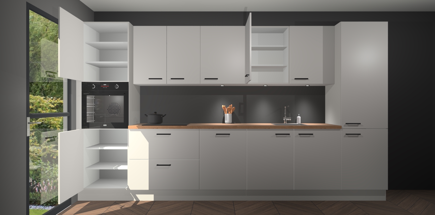 Dit is de perfecte keuken voor wie op zoek is naar een luxueuze stijl zonder zijn portemonnee te legen! Het chique ontwerp van de zijdegrijze keuken Wels voegt dat vleugje verfijning toe aan elk huis. Het gemak van voorgemonteerde kasten bespaart u talloze uren tijd en energie, zodat u veel sneller dan verwacht kunt beginnen te genieten van uw prachtige nieuwe keuken. Bovendien bedraagt de levertijd slechts 7 weken.
