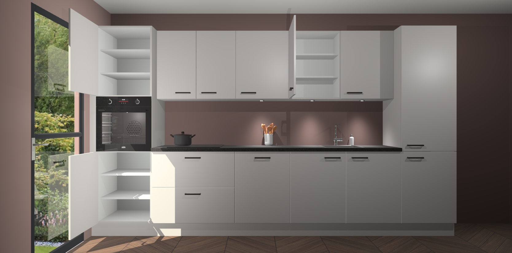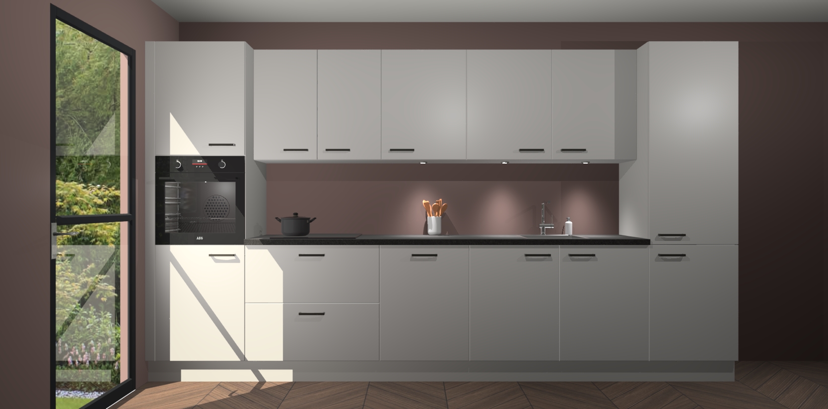 Dit is de perfecte keuken voor wie op zoek is naar een luxueuze stijl zonder zijn portemonnee te legen! Het chique ontwerp van de zijdegrijze keuken Wels voegt dat vleugje verfijning toe aan elk huis. Het gemak van voorgemonteerde kasten bespaart u talloze uren tijd en energie, zodat u veel sneller dan verwacht kunt beginnen te genieten van uw prachtige nieuwe keuken. Bovendien bedraagt de levertijd slechts 7 weken.