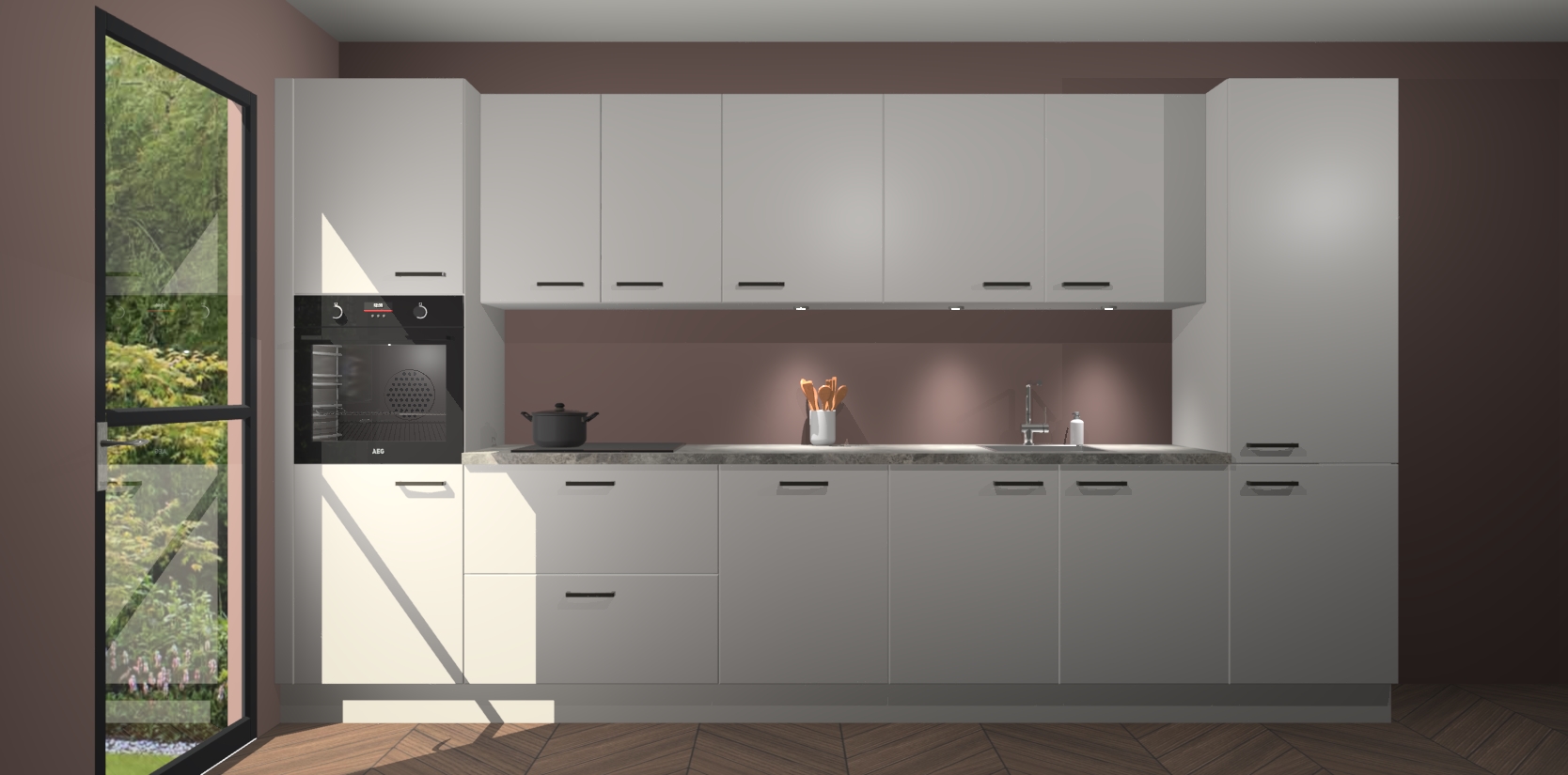 Dit is de perfecte keuken voor wie op zoek is naar een luxueuze stijl zonder zijn portemonnee te legen! Het chique ontwerp van de zijdegrijze keuken Wels voegt dat vleugje verfijning toe aan elk huis. Het gemak van voorgemonteerde kasten bespaart u talloze uren tijd en energie, zodat u veel sneller dan verwacht kunt beginnen te genieten van uw prachtige nieuwe keuken. Bovendien bedraagt de levertijd slechts 7 weken.