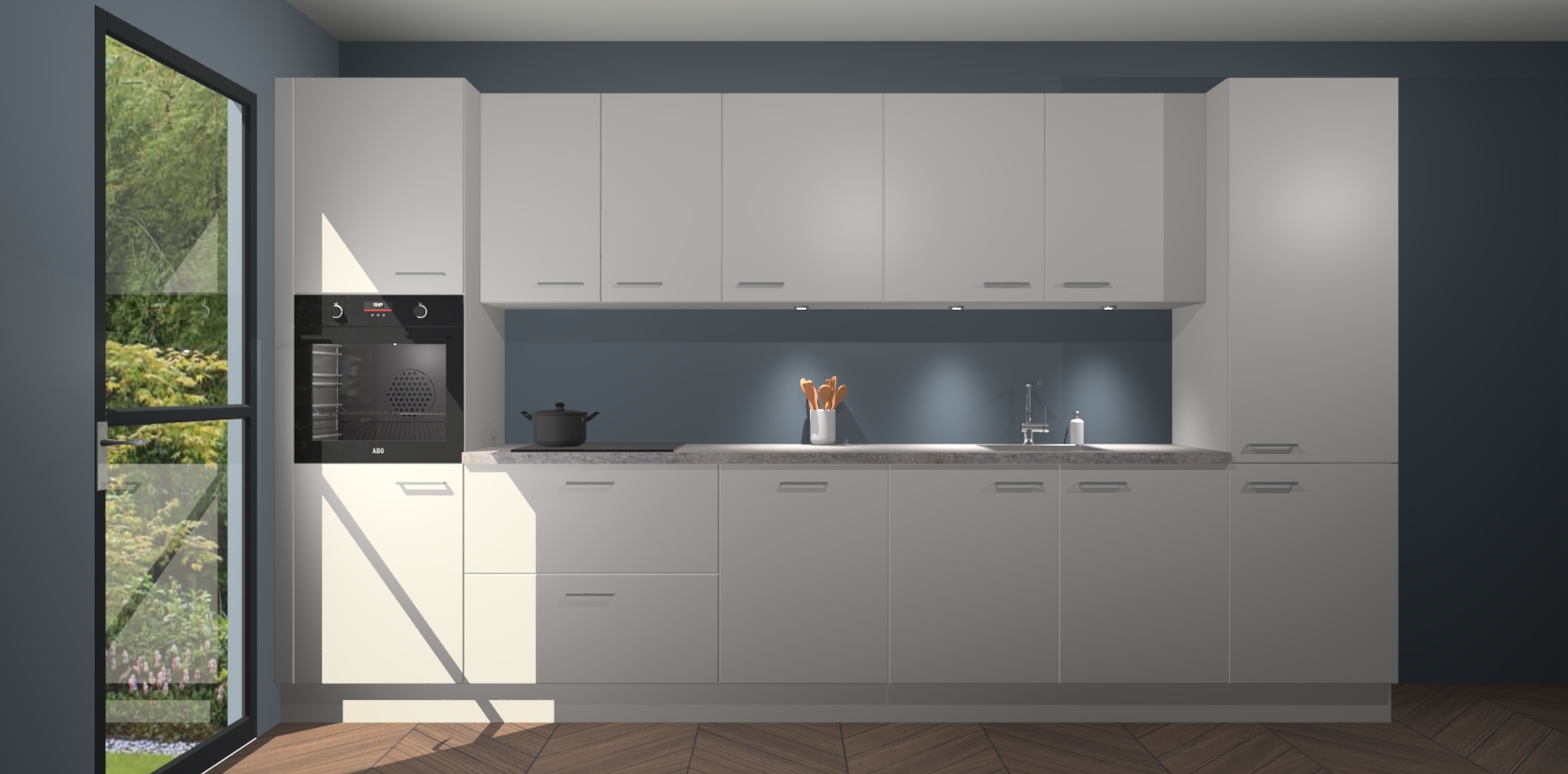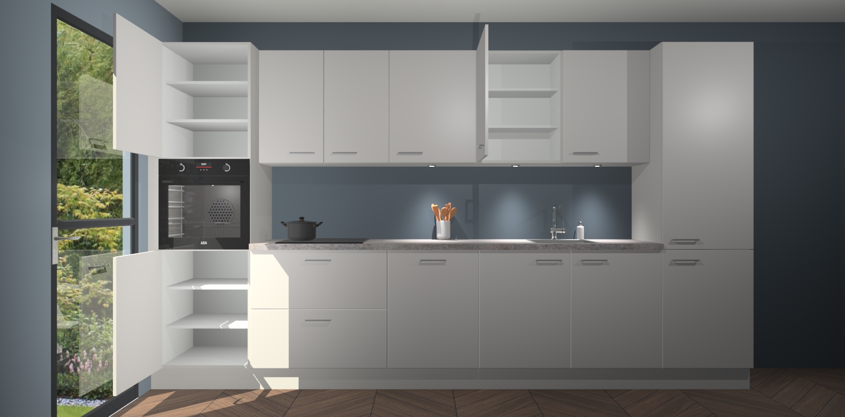 Dit is de perfecte keuken voor wie op zoek is naar een luxueuze stijl zonder zijn portemonnee te legen! Het chique ontwerp van de zijdegrijze keuken Wels voegt dat vleugje verfijning toe aan elk huis. Het gemak van voorgemonteerde kasten bespaart u talloze uren tijd en energie, zodat u veel sneller dan verwacht kunt beginnen te genieten van uw prachtige nieuwe keuken. Bovendien bedraagt de levertijd slechts 7 weken.