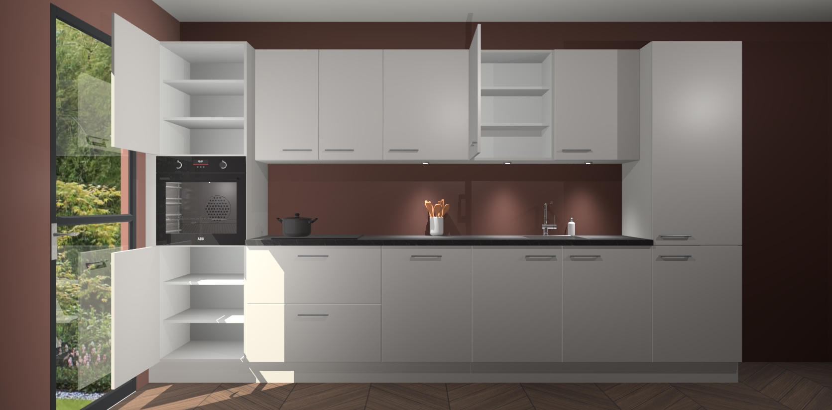 Dit is de perfecte keuken voor wie op zoek is naar een luxueuze stijl zonder zijn portemonnee te legen! Het chique ontwerp van de zijdegrijze keuken Wels voegt dat vleugje verfijning toe aan elk huis. Het gemak van voorgemonteerde kasten bespaart u talloze uren tijd en energie, zodat u veel sneller dan verwacht kunt beginnen te genieten van uw prachtige nieuwe keuken. Bovendien bedraagt de levertijd slechts 7 weken.