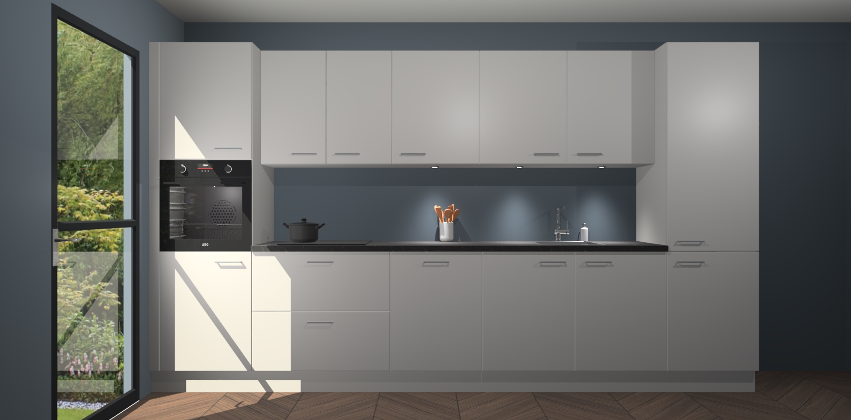 Dit is de perfecte keuken voor wie op zoek is naar een luxueuze stijl zonder zijn portemonnee te legen! Het chique ontwerp van de zijdegrijze keuken Wels voegt dat vleugje verfijning toe aan elk huis. Het gemak van voorgemonteerde kasten bespaart u talloze uren tijd en energie, zodat u veel sneller dan verwacht kunt beginnen te genieten van uw prachtige nieuwe keuken. Bovendien bedraagt de levertijd slechts 7 weken.