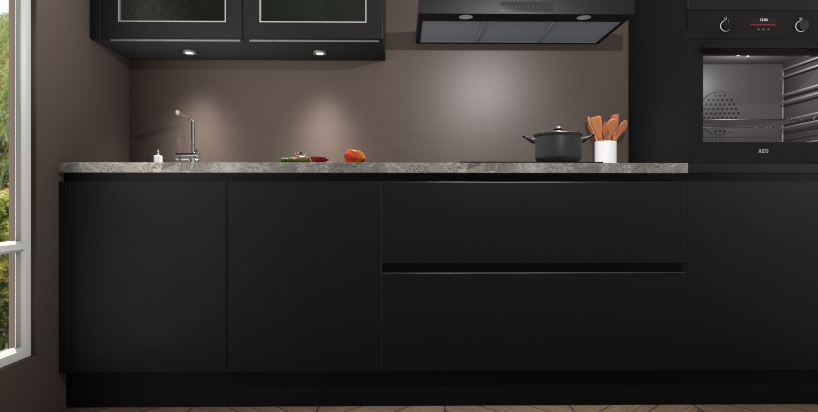 In deze box zijn alle kleuren verzameld van de deuren en werkbladen. Vraag de gratis kleurenbox aan en kijk thuis rustig verder!