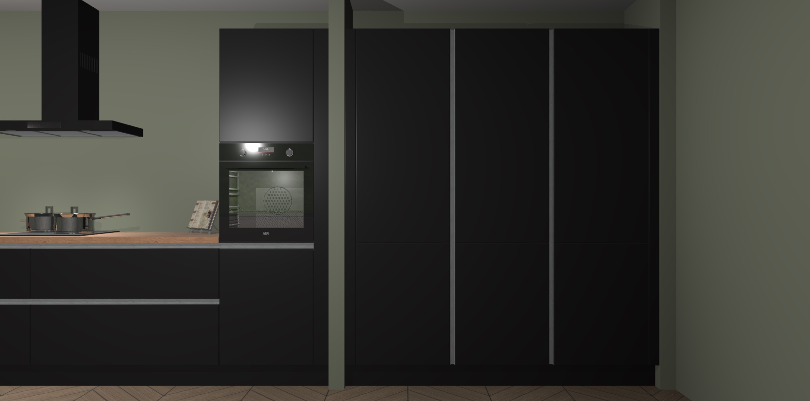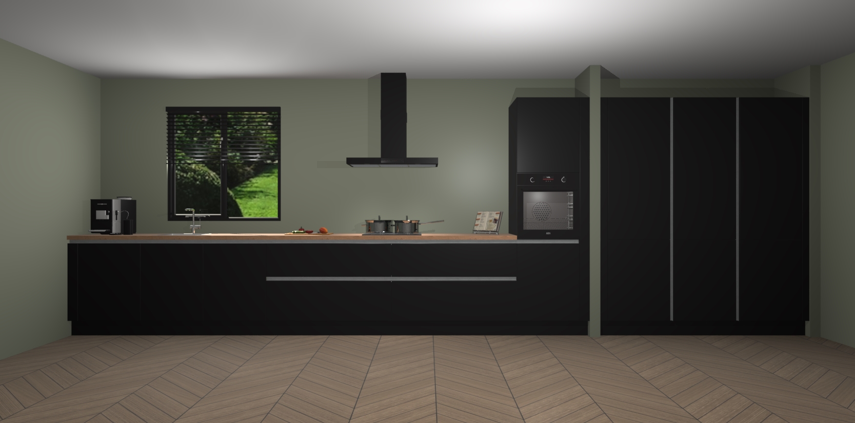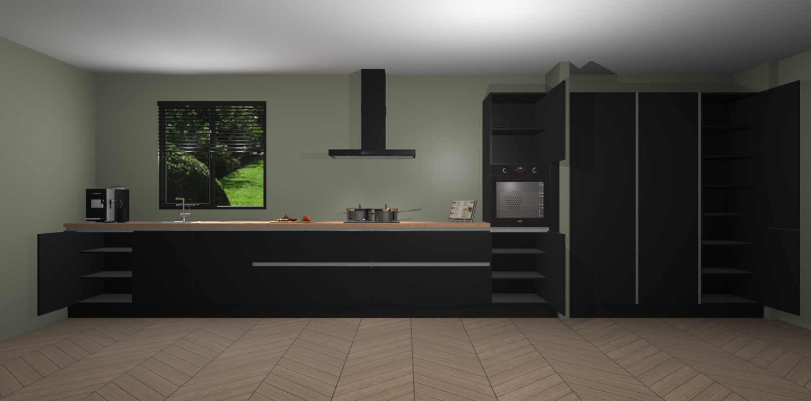 Een stijlvolle en praktische keuken als deze mag gezien worden. Dankzij de prachtige matte afwerking wordt de keuken gemakkelijk het middelpunt van uw huis - hij ziet er geweldig uit onder allerlei lichtomstandigheden, van dag tot nacht!