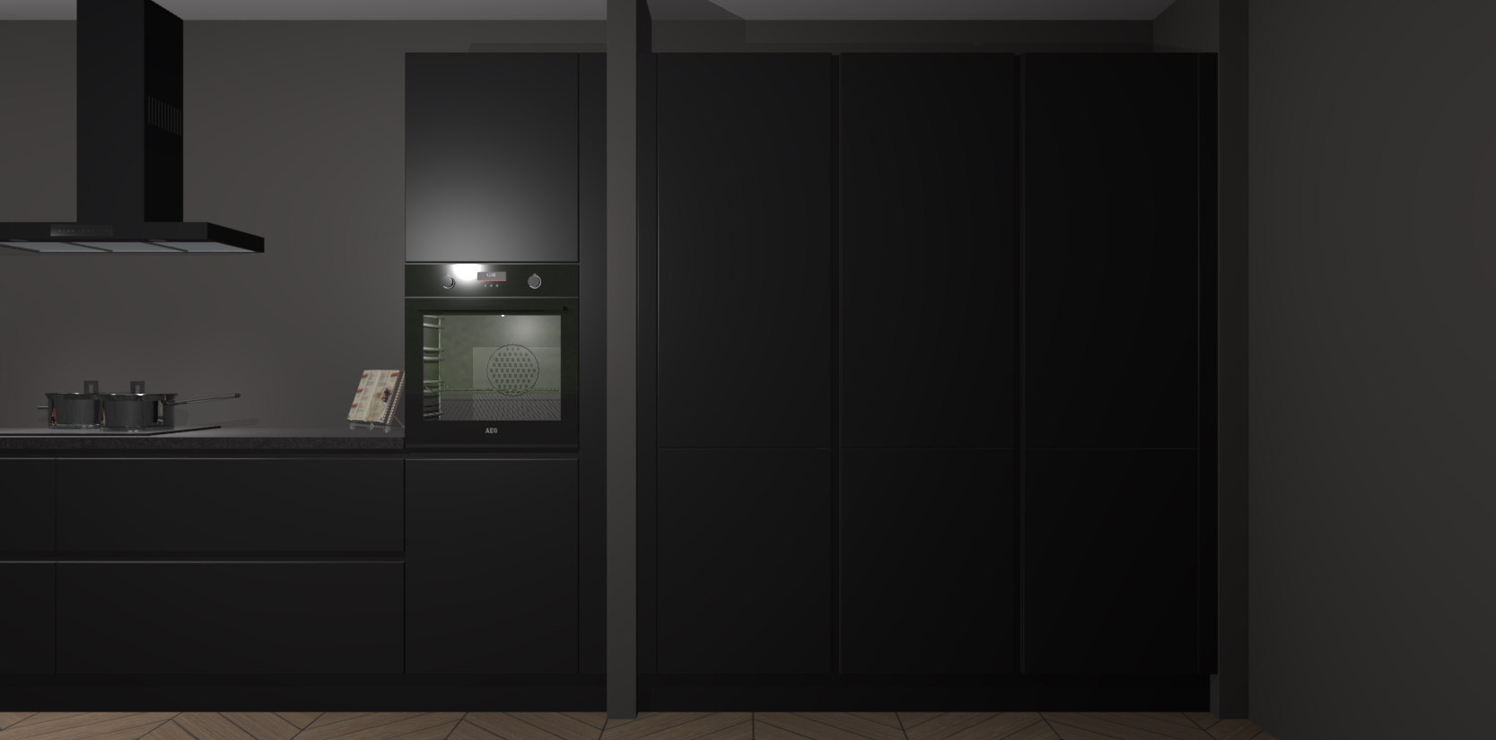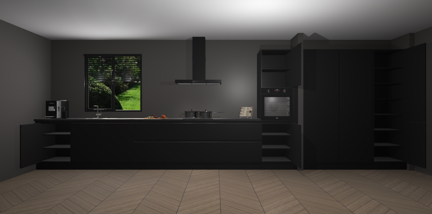 Een stijlvolle en praktische keuken als deze mag gezien worden. Dankzij de prachtige matte afwerking wordt de keuken gemakkelijk het middelpunt van uw huis - hij ziet er geweldig uit onder allerlei lichtomstandigheden, van dag tot nacht!