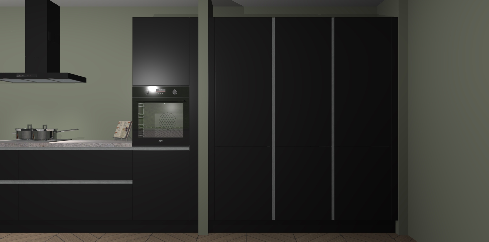 Een stijlvolle en praktische keuken als deze mag gezien worden. Dankzij de prachtige matte afwerking wordt de keuken gemakkelijk het middelpunt van uw huis - hij ziet er geweldig uit onder allerlei lichtomstandigheden, van dag tot nacht!