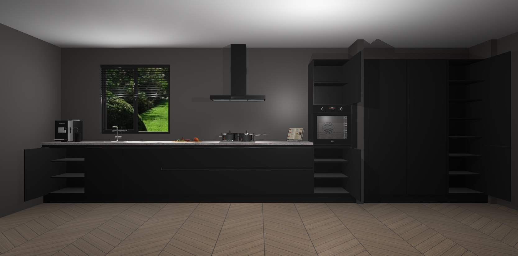 Een stijlvolle en praktische keuken als deze mag gezien worden. Dankzij de prachtige matte afwerking wordt de keuken gemakkelijk het middelpunt van uw huis - hij ziet er geweldig uit onder allerlei lichtomstandigheden, van dag tot nacht!