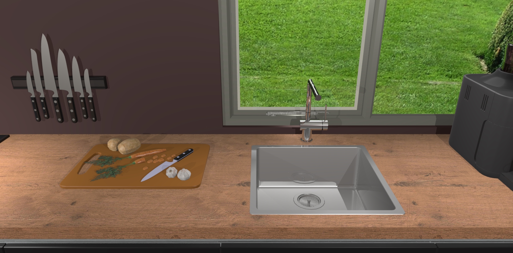 - De spoelbak is nog niet in gevreesd. Dit dient tijdens het werk gedaan te worden