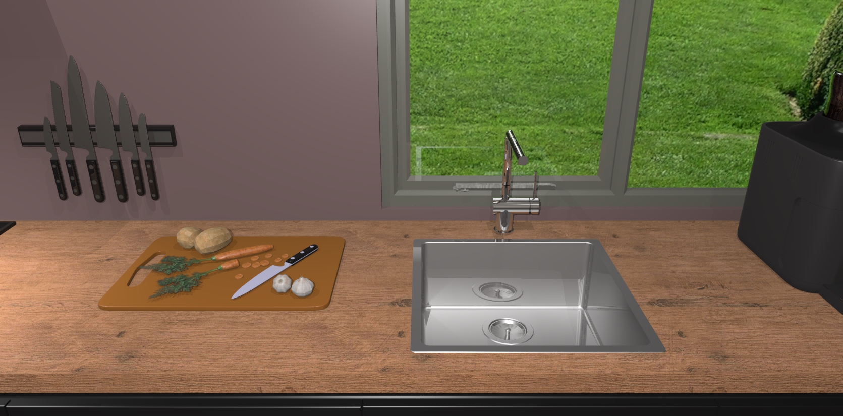 • De spoelbak is nog niet in gevreesd. Dit dient tijdens het werk gedaan te worden