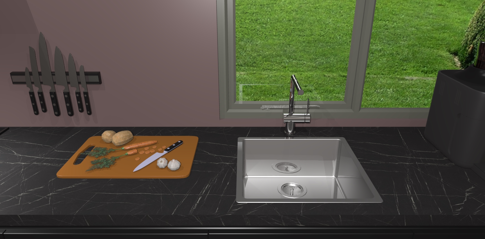 - De spoelbak is nog niet in gevreesd. Dit dient tijdens het werk gedaan te worden