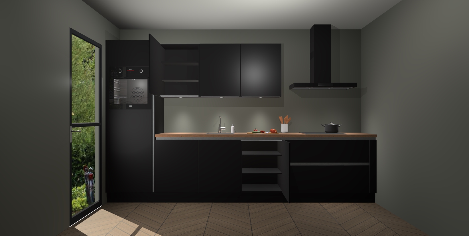 De Zwarte greeploze keuken Asmara: waar tijdloze elegantie en robuuste constructie elkaar ontmoeten. Door de combinatie van luxe en veerkracht zal deze keuken u de komende jaren goed van dienst zijn. De prachtige zachte look zorgt voor een tijdloze esthetiek die niet zal slijten met de tijd, waardoor u een decoratieve toevoeging aan uw huis creëert. Onze hoogwaardige kasten zijn gebouwd om lang mee te gaan en is zeer duurzaam en bestand tegen krassen, waardoor het ideaal is voor drukke gezinnen.