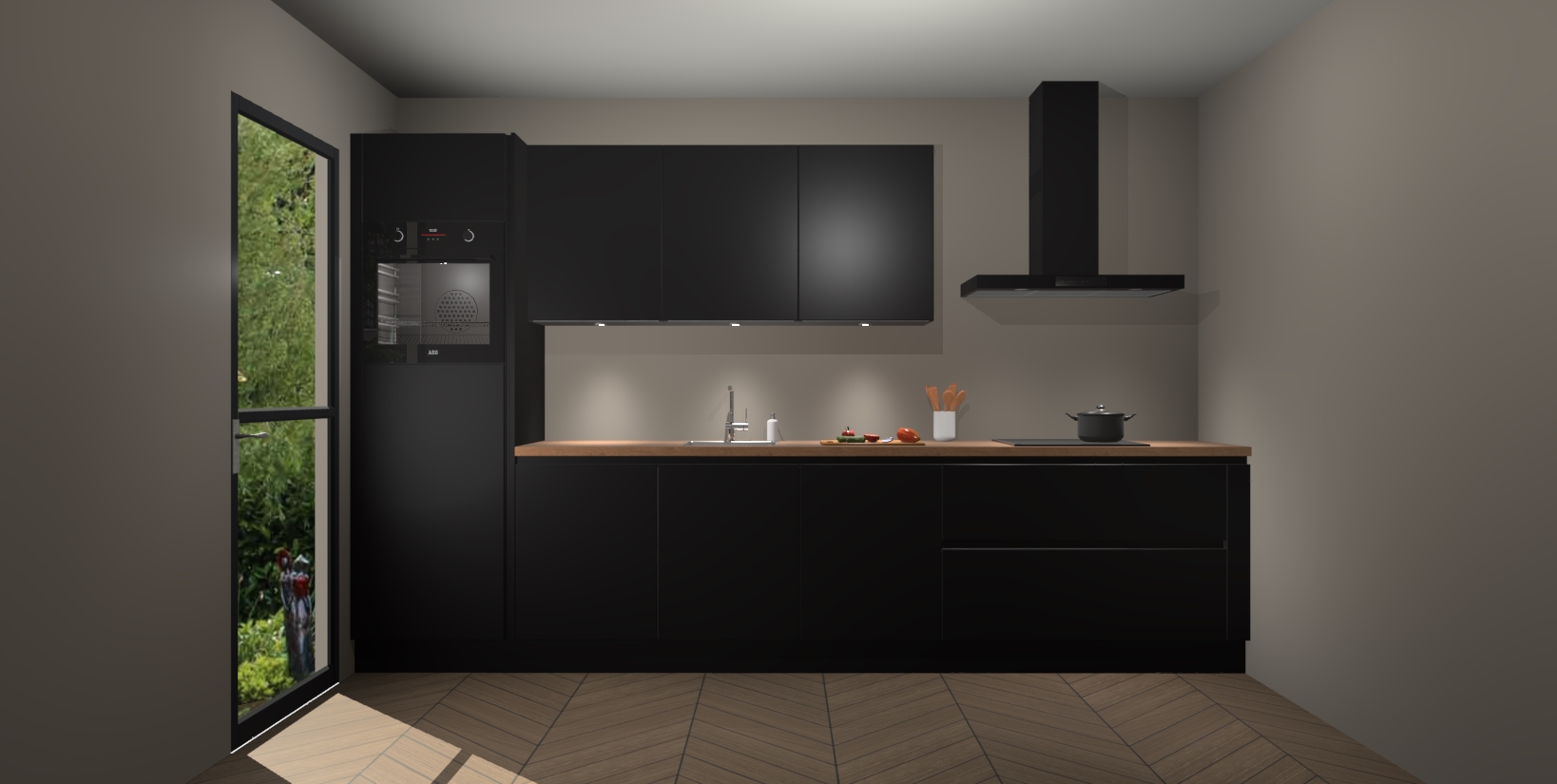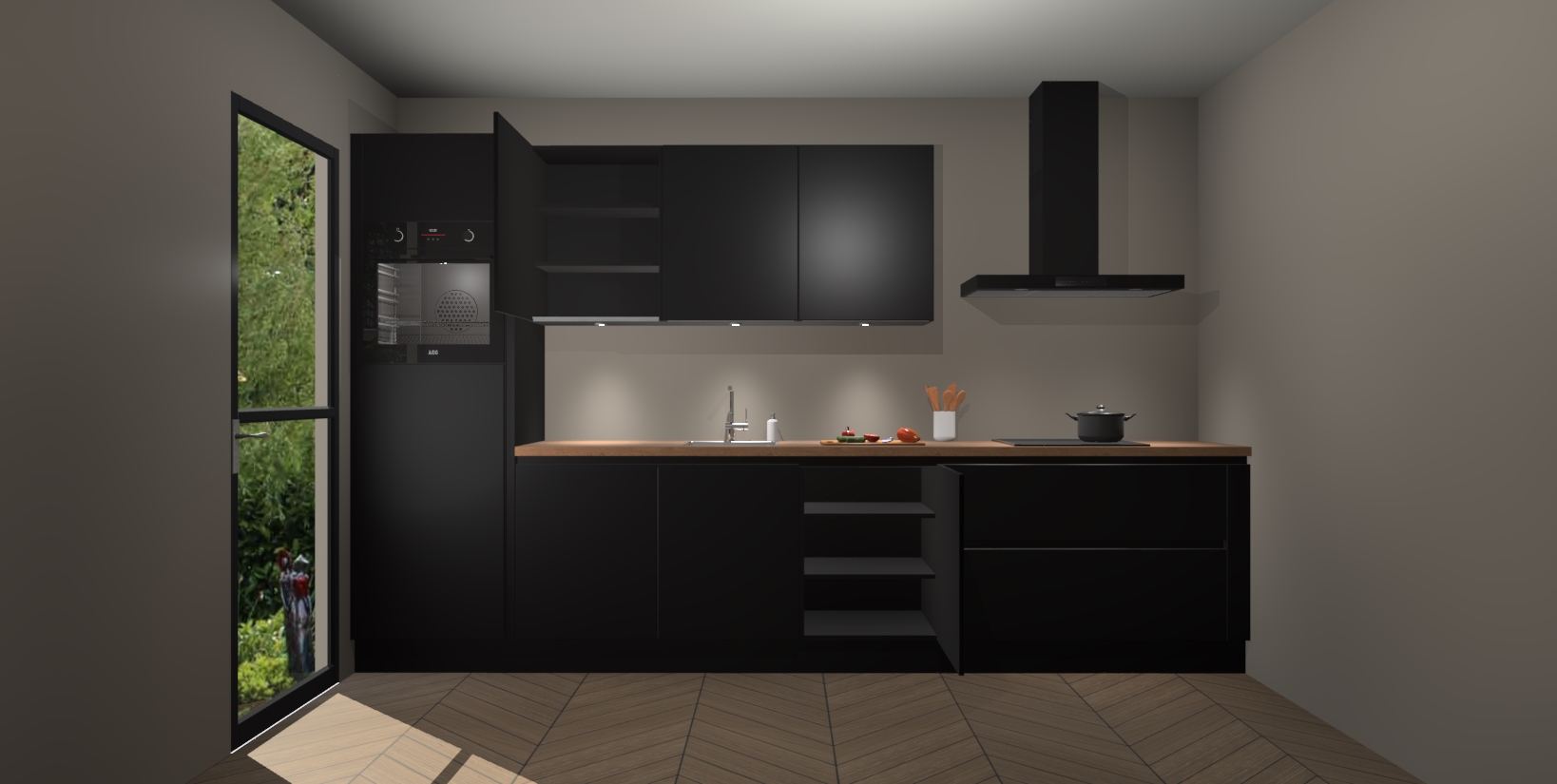 De Zwarte greeploze keuken Asmara: waar tijdloze elegantie en robuuste constructie elkaar ontmoeten. Door de combinatie van luxe en veerkracht zal deze keuken u de komende jaren goed van dienst zijn. De prachtige zachte look zorgt voor een tijdloze esthetiek die niet zal slijten met de tijd, waardoor u een decoratieve toevoeging aan uw huis creëert. Onze hoogwaardige kasten zijn gebouwd om lang mee te gaan en is zeer duurzaam en bestand tegen krassen, waardoor het ideaal is voor drukke gezinnen.