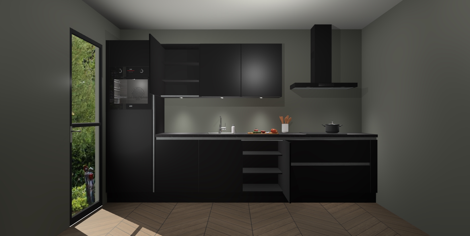 De Zwarte greeploze keuken Asmara: waar tijdloze elegantie en robuuste constructie elkaar ontmoeten. Door de combinatie van luxe en veerkracht zal deze keuken u de komende jaren goed van dienst zijn. De prachtige zachte look zorgt voor een tijdloze esthetiek die niet zal slijten met de tijd, waardoor u een decoratieve toevoeging aan uw huis creëert. Onze hoogwaardige kasten zijn gebouwd om lang mee te gaan en is zeer duurzaam en bestand tegen krassen, waardoor het ideaal is voor drukke gezinnen.