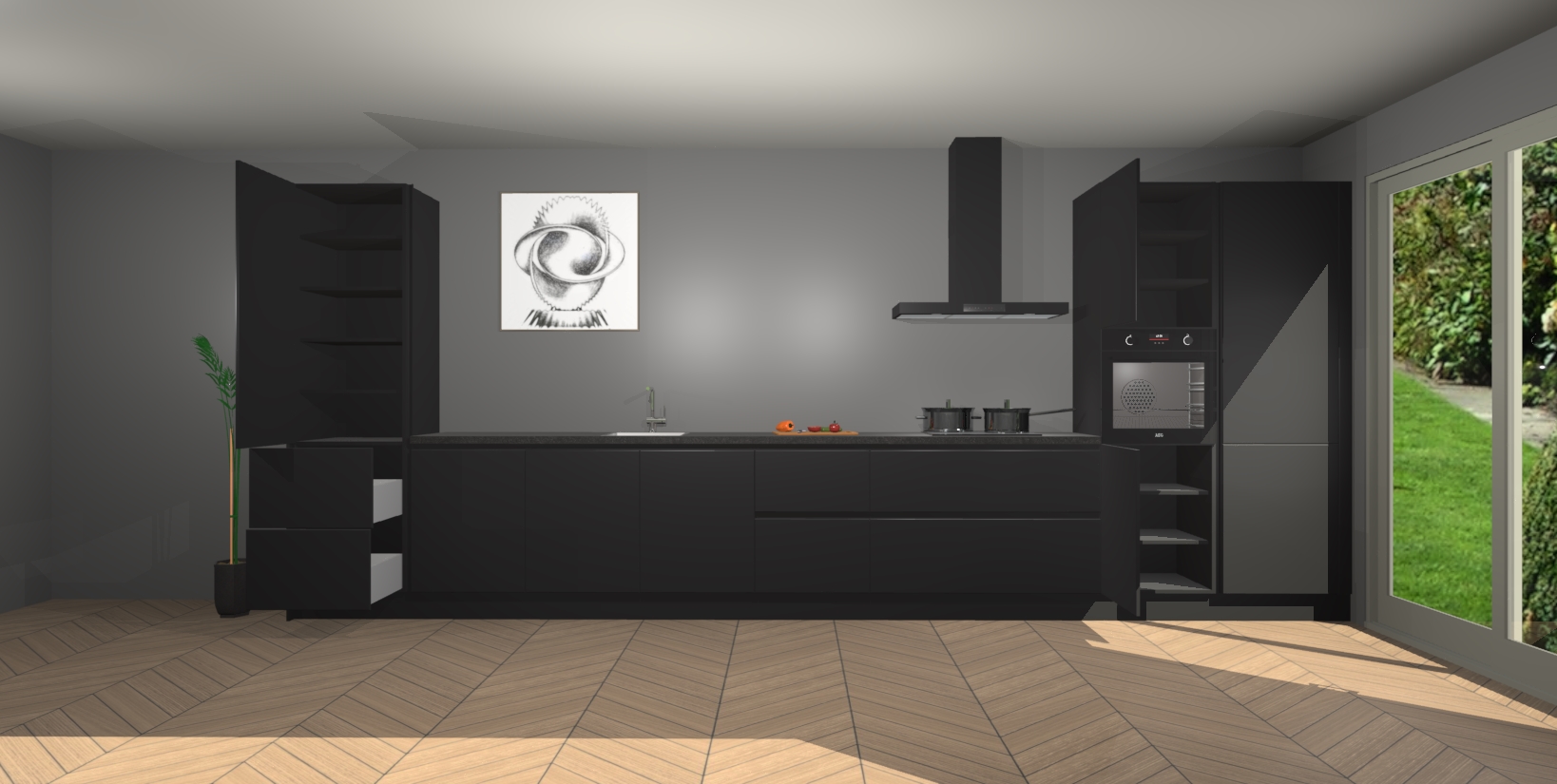 De Zwarte greeploze keuken Barentsburg is de perfecte combinatie van stijl en functionaliteit. Het strakke design geeft uw keuken een moderne look die jarenlang meegaat. Bovendien zorgen onze deuren met softclose voor extra gebruiksgemak en gemoedsrust.