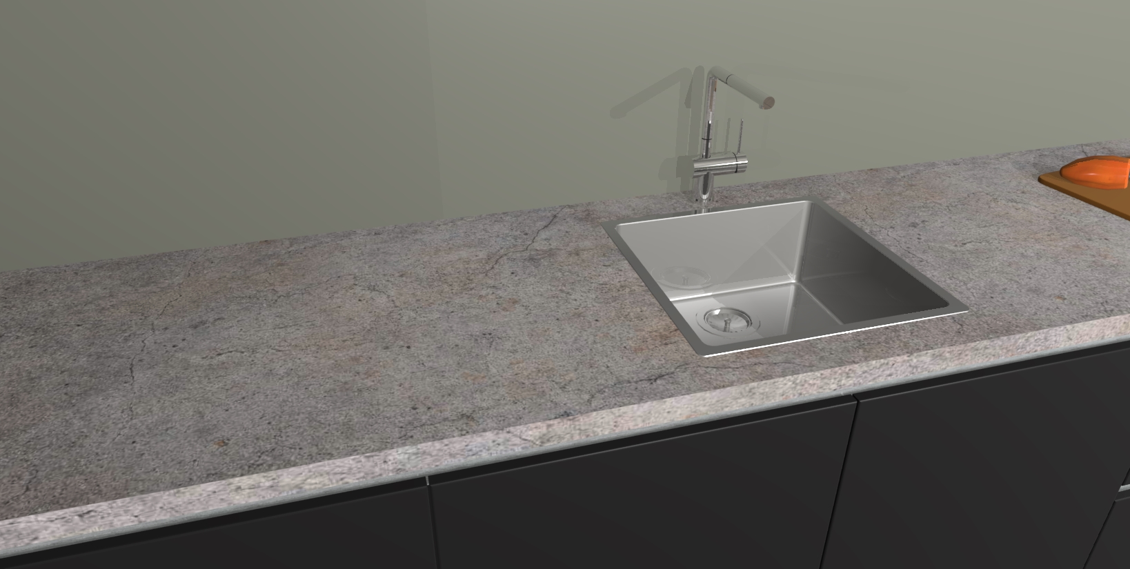 - De spoelbak is nog niet in gevreesd. Dit dient tijdens het werk gedaan te worden