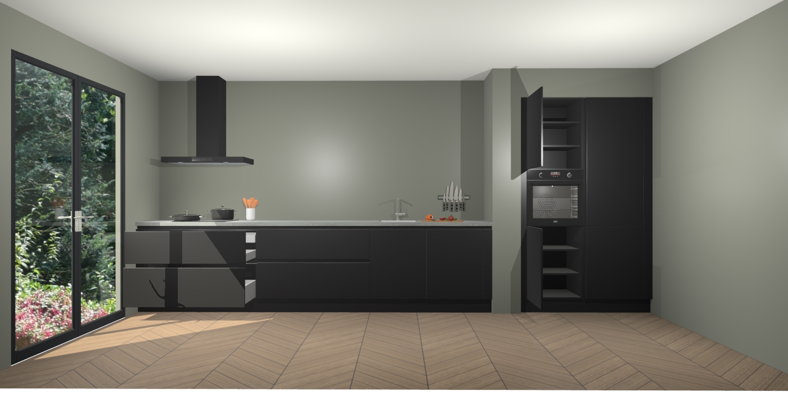 Maak kennis met de Zwarte greeploze keuken Calgary - de perfecte aanvulling voor uw moderne keuken! Ervaar tijdloos design, elegantie en een chique uitstraling met onze handgrepen, soft-close deuren en veel opbergruimte. Dit alles wordt aangeboden tegen een vaste lage prijs voor ongeëvenaarde Duitse keukenkwaliteit!