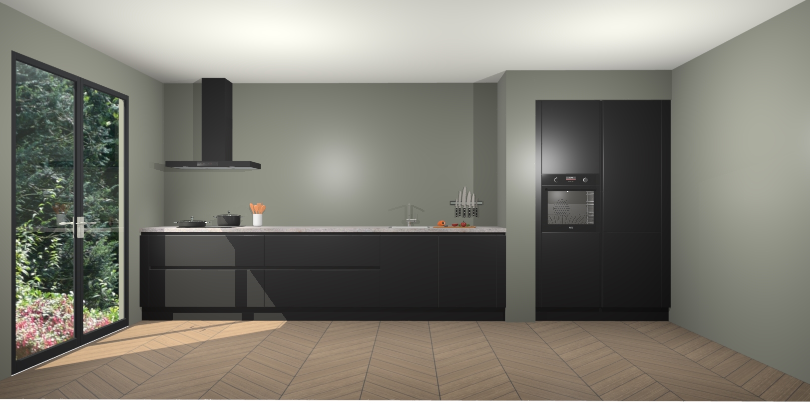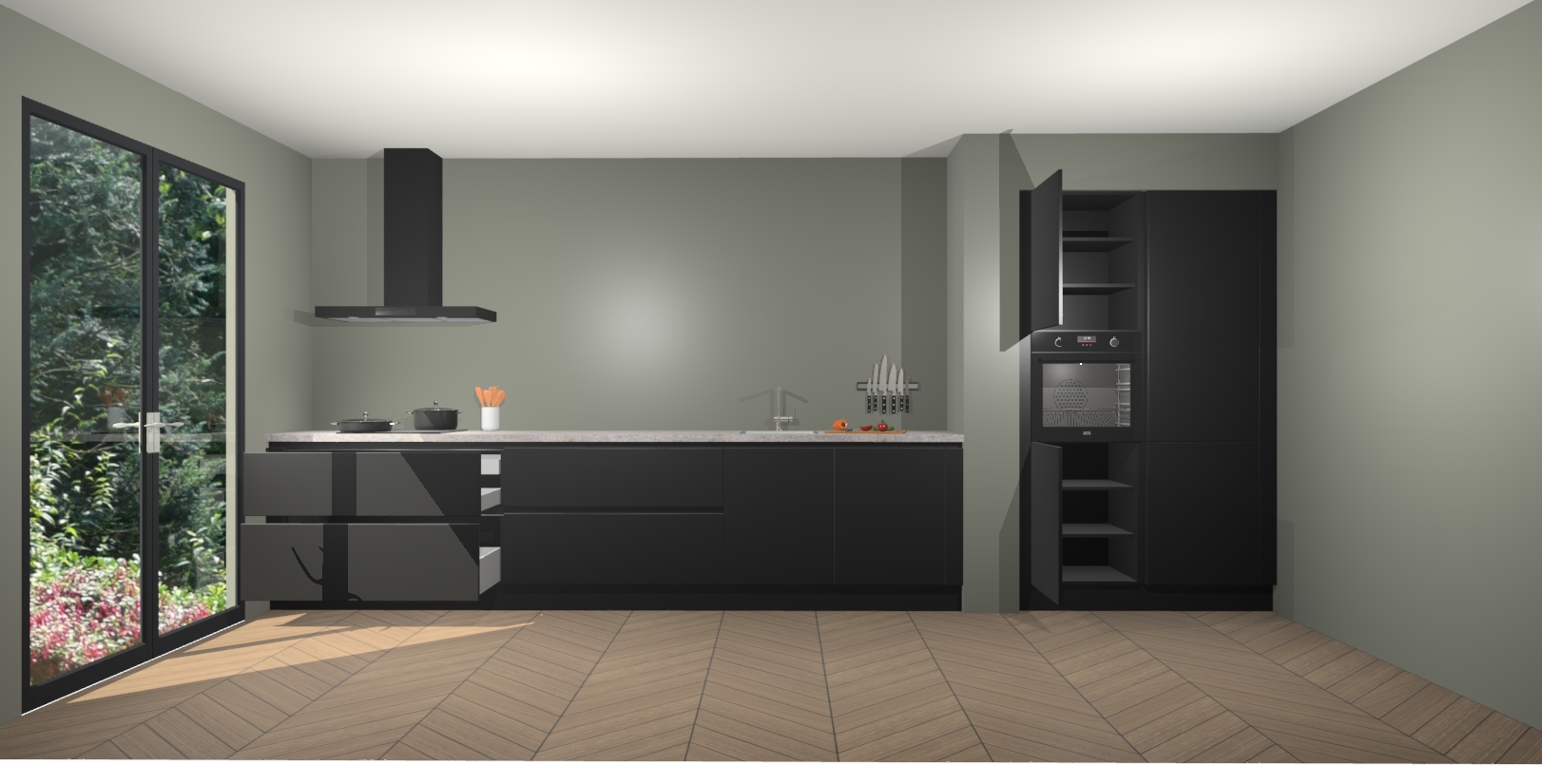 Maak kennis met de Zwarte greeploze keuken Calgary - de perfecte aanvulling voor uw moderne keuken! Ervaar tijdloos design, elegantie en een chique uitstraling met onze handgrepen, soft-close deuren en veel opbergruimte. Dit alles wordt aangeboden tegen een vaste lage prijs voor ongeëvenaarde Duitse keukenkwaliteit!