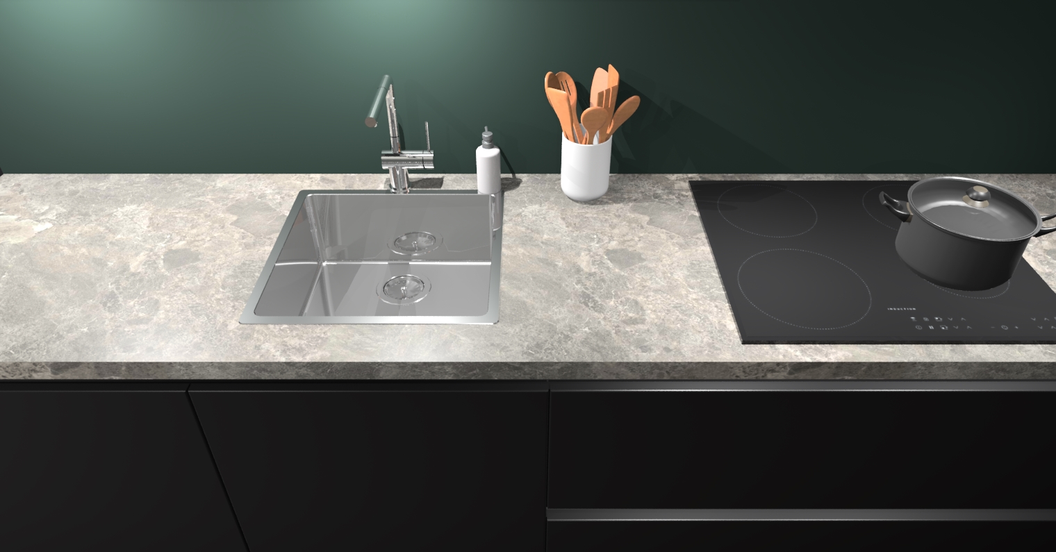 - Uitsparing van kookplaat, spoelbak en kraan dient u zelf te verzorgen.