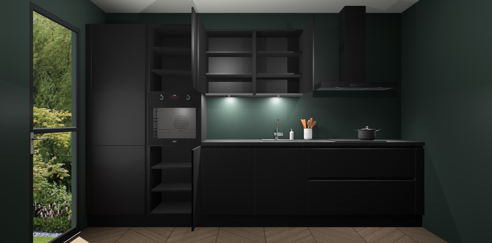 De Zwarte greeploze keuken Groenland: waar tijdloze elegantie en robuuste constructie elkaar ontmoeten. Door de combinatie van luxe en veerkracht zal deze keuken u de komende jaren goed van dienst zijn. De prachtige zachte look zorgt voor een tijdloze esthetiek die niet zal slijten met de tijd, waardoor u een decoratieve toevoeging aan uw huis creëert. Onze hoogwaardige kasten zijn gebouwd om lang mee te gaan en is zeer duurzaam en bestand tegen krassen, waardoor het ideaal is voor drukke gezinnen.