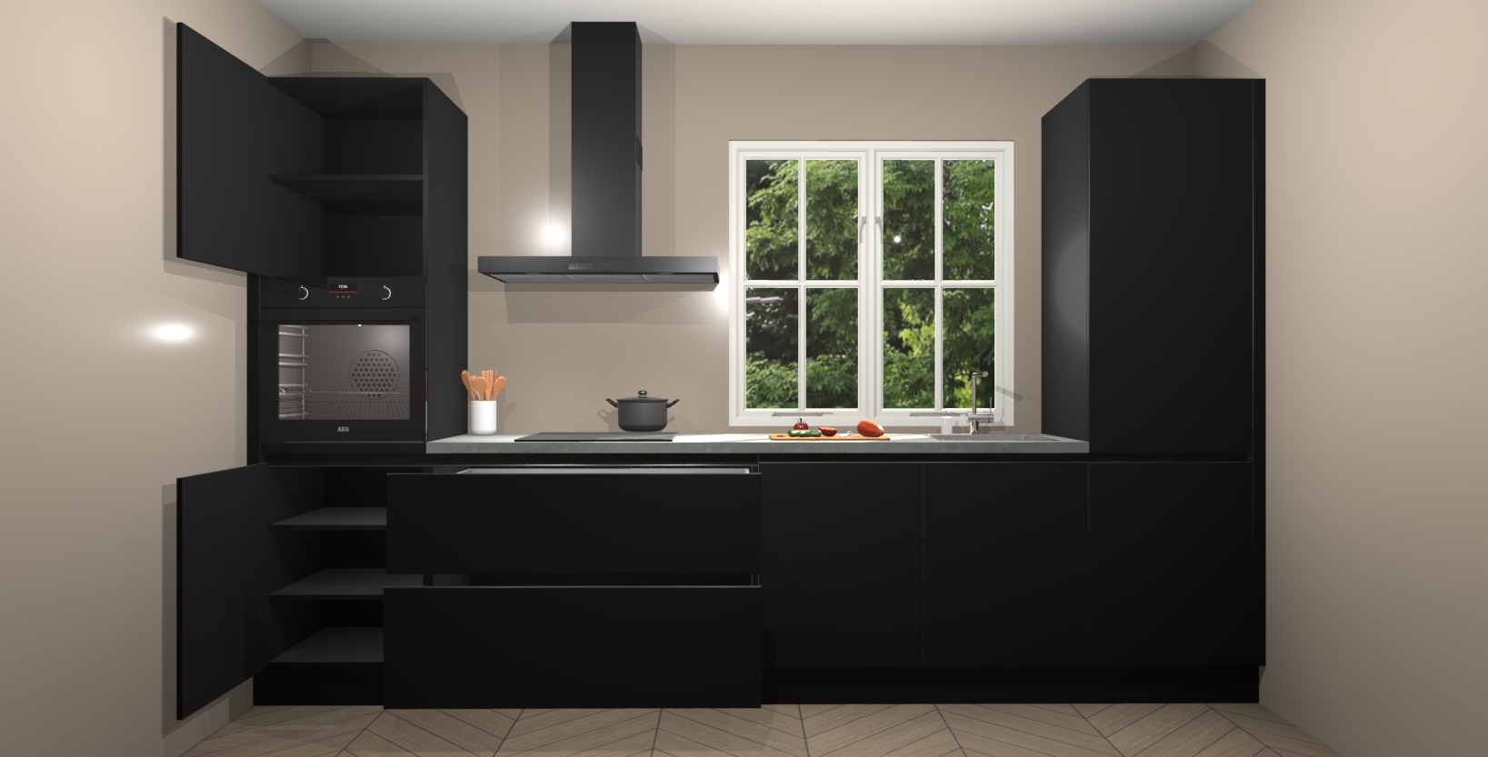 Maak kennis met de nieuwe Zwarte greeploze keuken Jakarta - een verbluffend, hoogwaardig keukenontwerp die uw ruimte gegarandeerd omtovert tot iets buitengewoons! Met zijn eigentijdse greeploze kastdeuren met luxueuze softclose systeem is de Zwarte keuken Jakarta de perfecte keuze voor iedereen die de look en feel van zijn leefruimte wil opwaarderen.