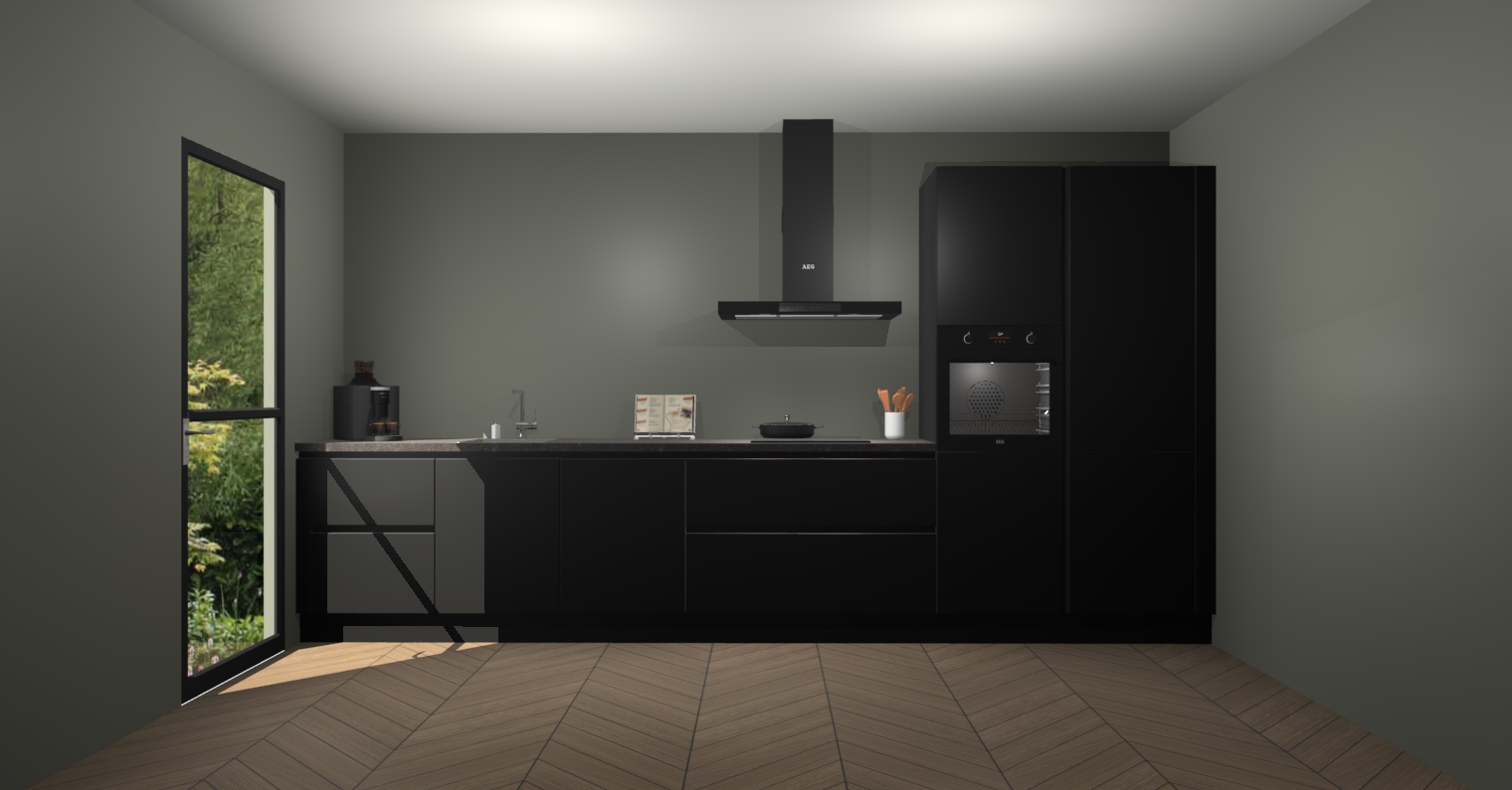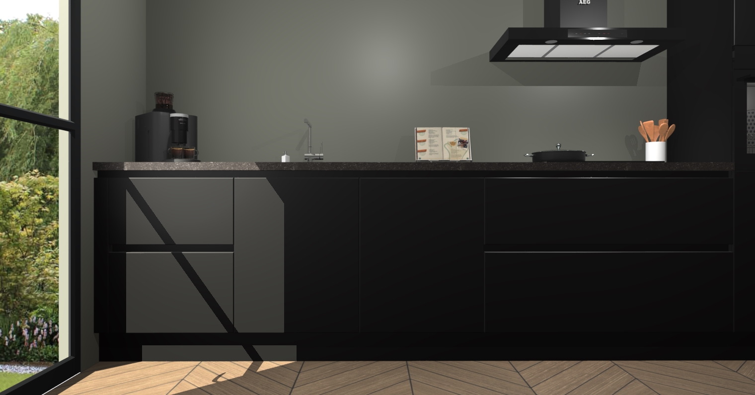 De Zwarte greeploze keuken Leuven is de perfecte mix van modern en tijdloos design. Met zijn prachtige glazen deuren op de bovenkastjes voegt hij echt iets speciaals en unieks toe aan elke keuken. En met vijf ingebouwde apparaten inbegrepen - een oven, inductiekookplaat, afzuigkap, vaatwasser en koelkast - kunt u deze keuken echt helemaal van uzelf maken! U kunt na bestelling ook upgraden naar AEG voor een nog hogere kwaliteitservaring.
