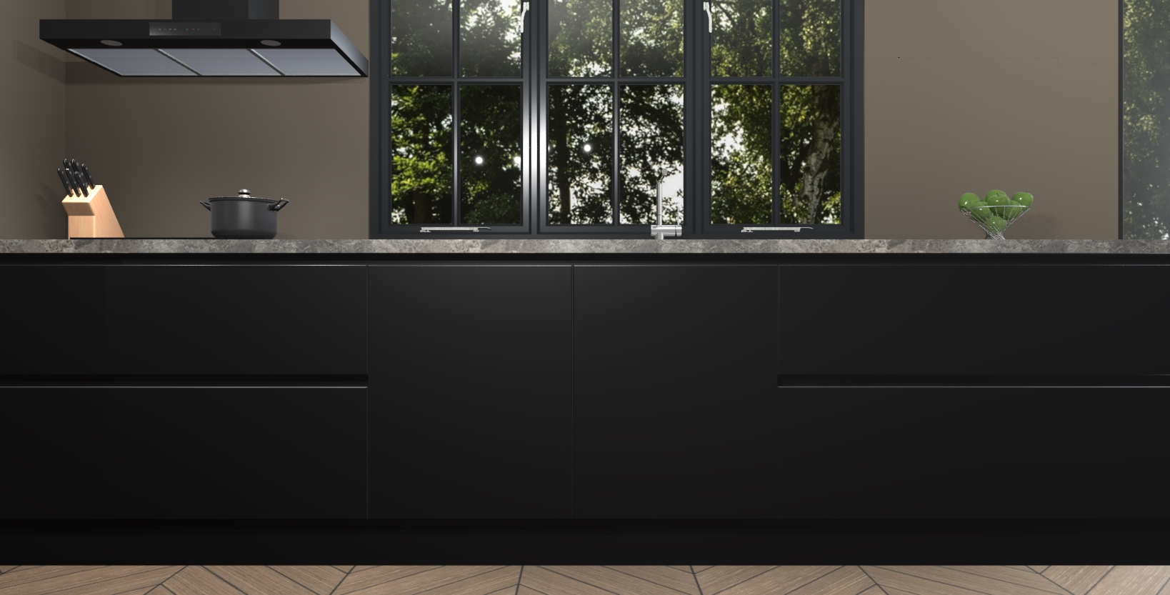 De softclose deuren openen en sluiten is ook heel eenvoudig - geniet van een moeiteloze keukenervaring, zelfs als er kinderen rondlopen. Voor extra gemak bij het plaatsen van uw bestelling bieden we ook een upgrade naar een kookplaat met geïntegreerde afzuiging.