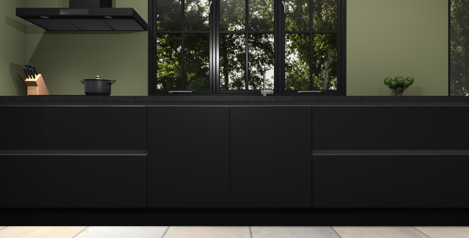De softclose deuren openen en sluiten is ook heel eenvoudig - geniet van een moeiteloze keukenervaring, zelfs als er kinderen rondlopen. Voor extra gemak bij het plaatsen van uw bestelling bieden we ook een upgrade naar een kookplaat met geïntegreerde afzuiging.