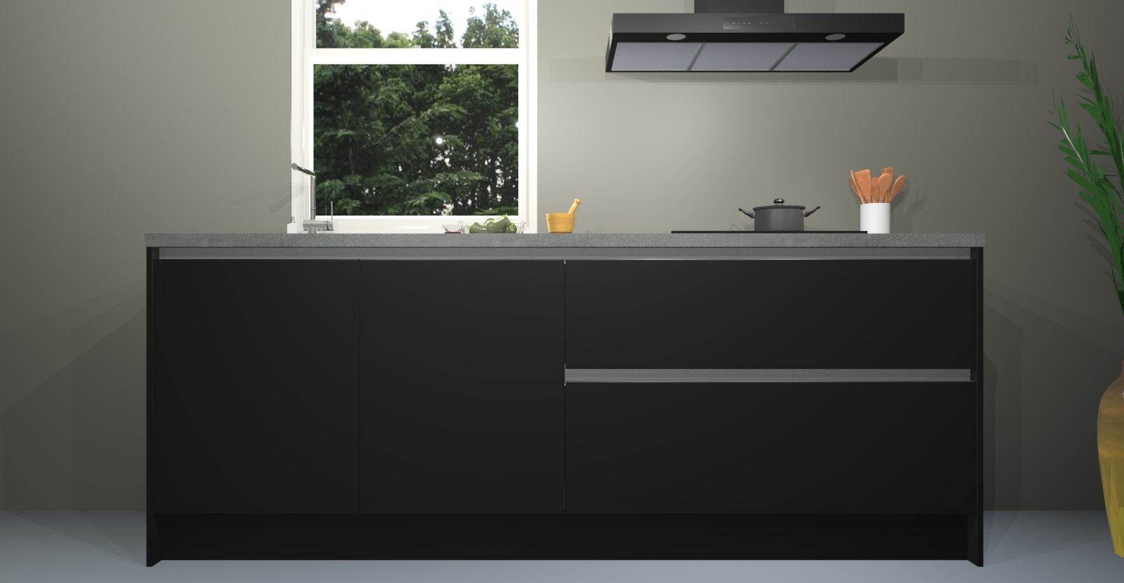 Inclusief plinten, stelpoten en werkblad