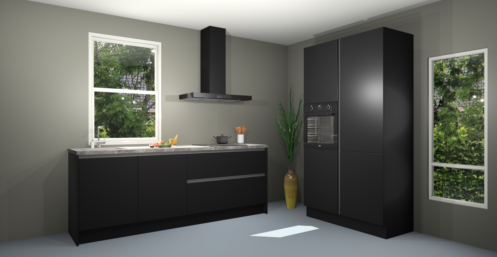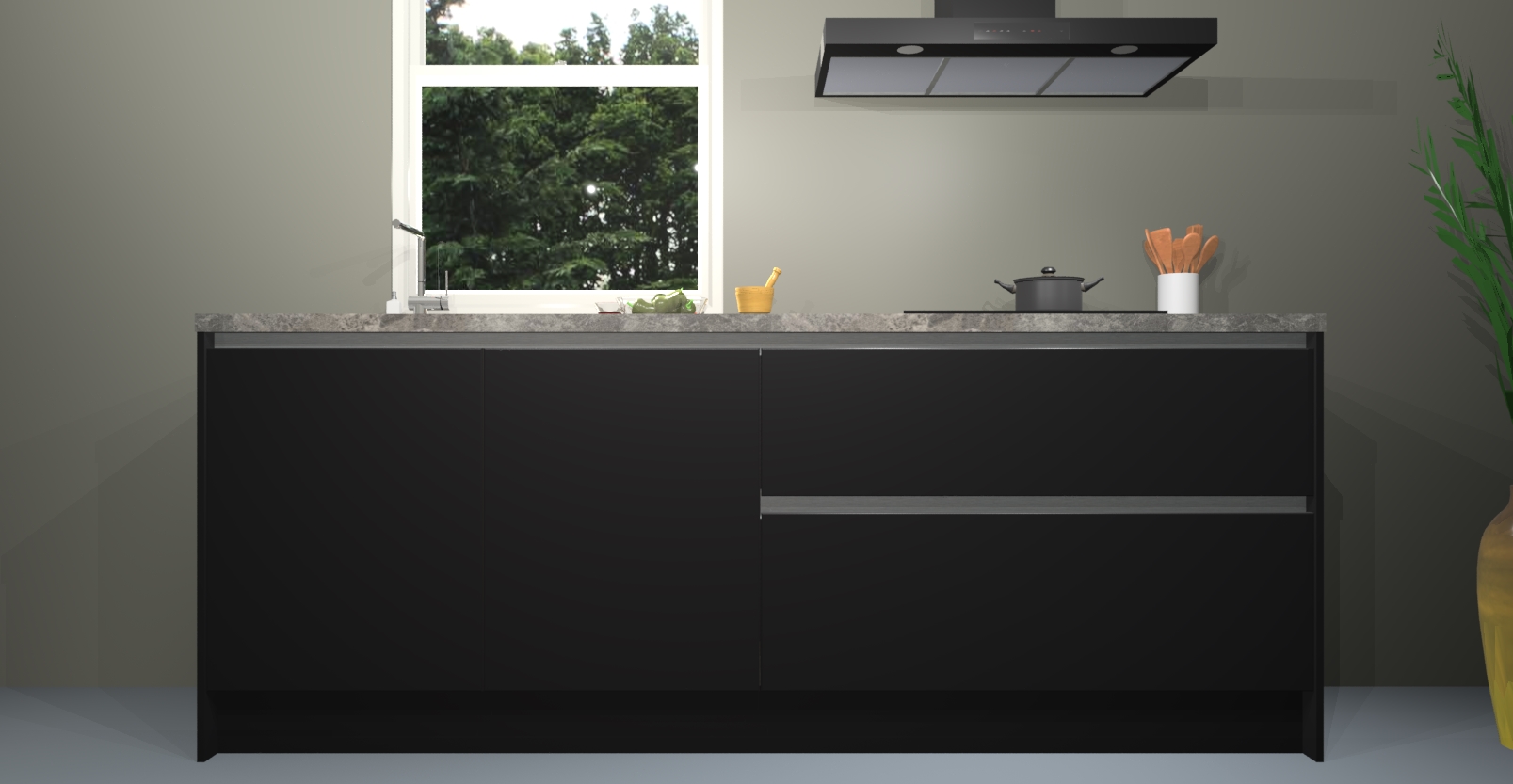 De Zwarte greeploze keuken Monaco heeft voldoende opbergruimte om uw keukenbenodigdheden georganiseerd en netjes te houden. Geniet van het gemak van de soft-close deuren, die deze stijlvolle look perfect afmaken. Maar dat is nog niet alles. Met de Zwarte greeploze keuken Monaco krijgt u maar liefst 5 ingebouwde apparaten: een oven, inductiekookplaat, afzuigkap, vaatwasser en koelkast. Deze kunnen gemakkelijk worden geüpgraded naar AEG als ze besteld zijn.