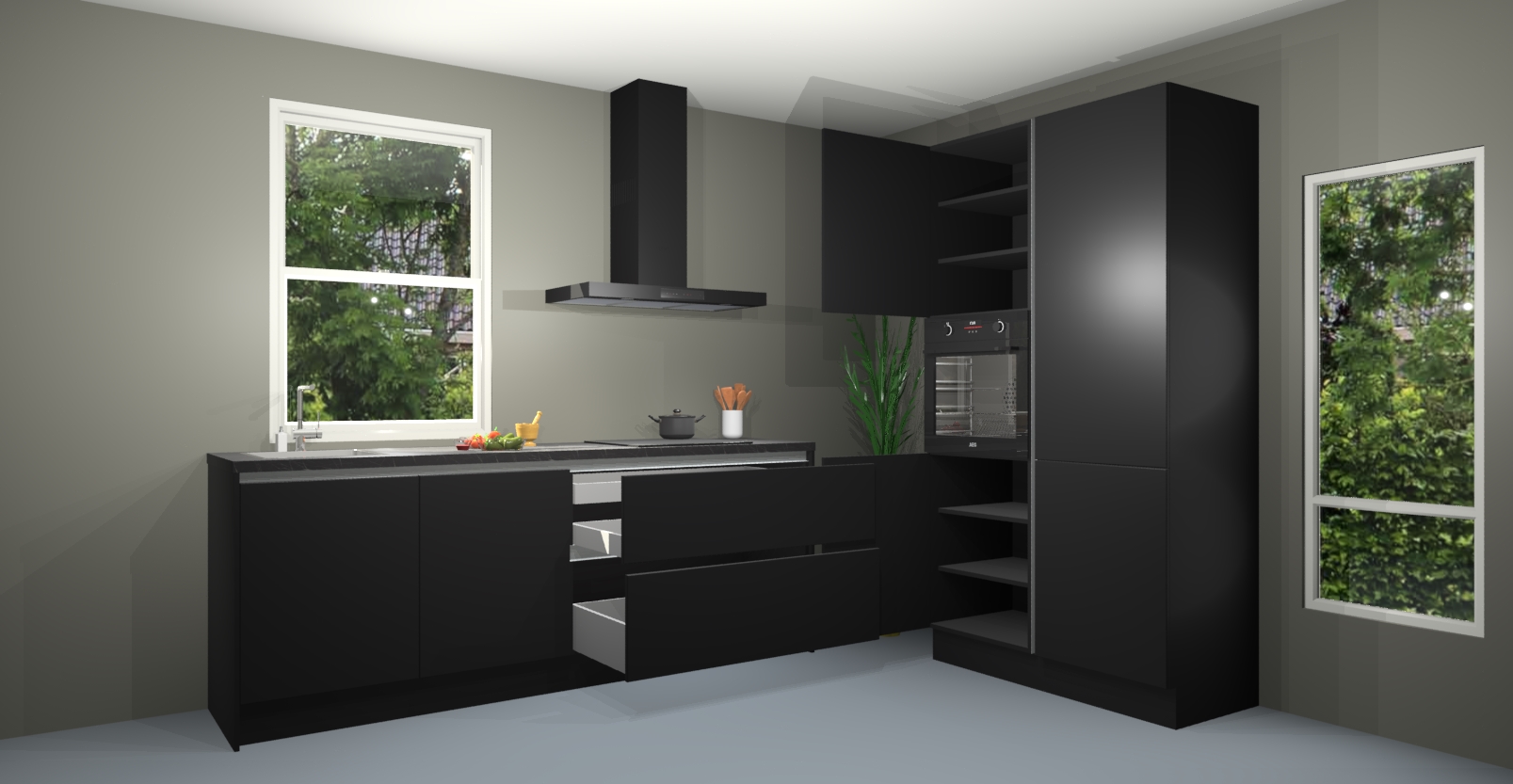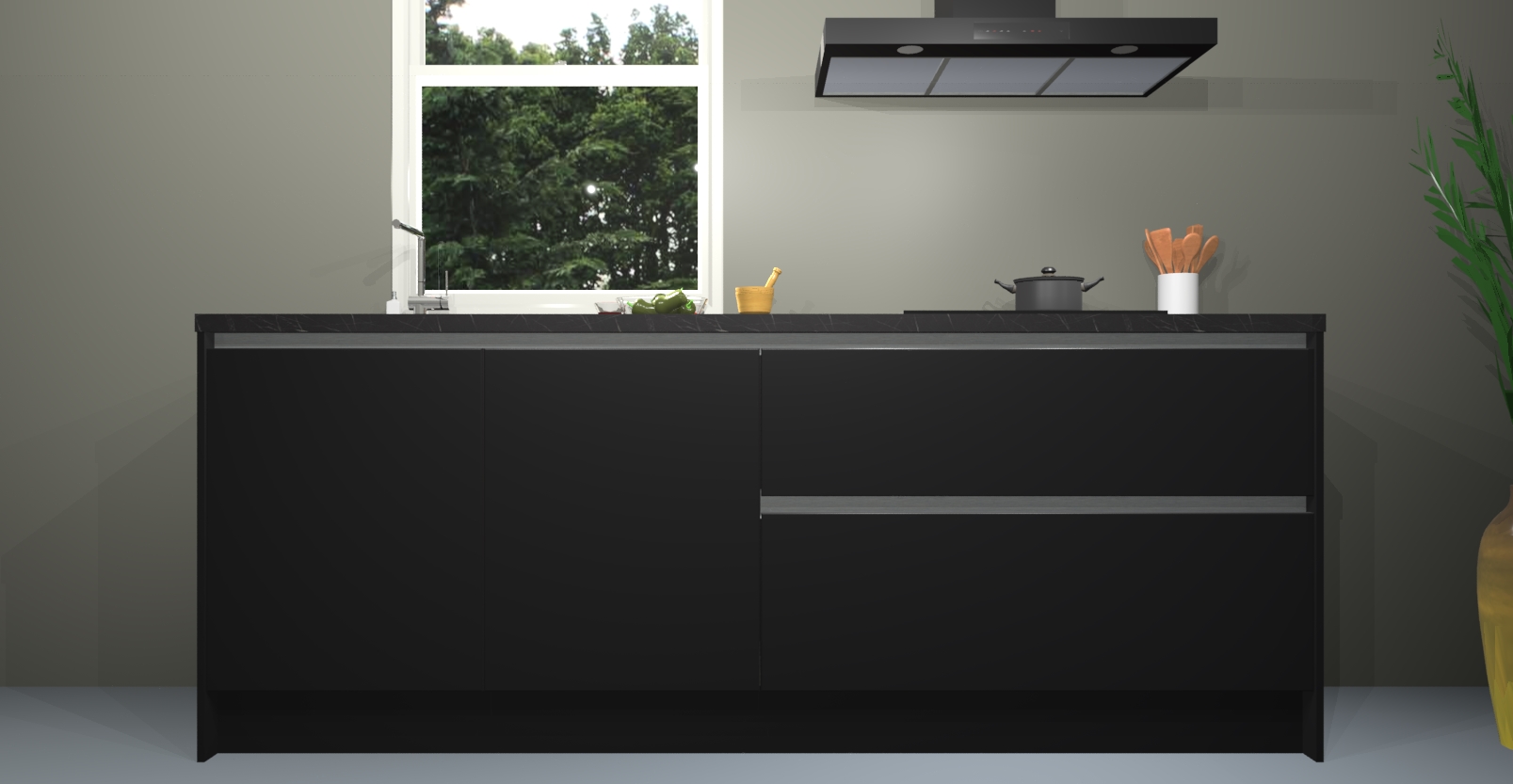De Zwarte greeploze keuken Monaco heeft voldoende opbergruimte om uw keukenbenodigdheden georganiseerd en netjes te houden. Geniet van het gemak van de soft-close deuren, die deze stijlvolle look perfect afmaken. Maar dat is nog niet alles. Met de Zwarte greeploze keuken Monaco krijgt u maar liefst 5 ingebouwde apparaten: een oven, inductiekookplaat, afzuigkap, vaatwasser en koelkast. Deze kunnen gemakkelijk worden geüpgraded naar AEG als ze besteld zijn.