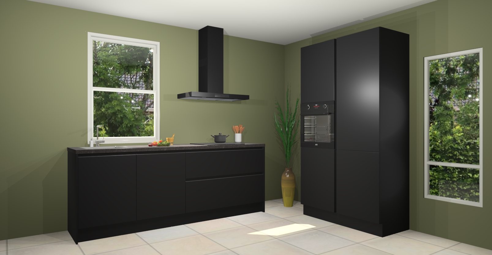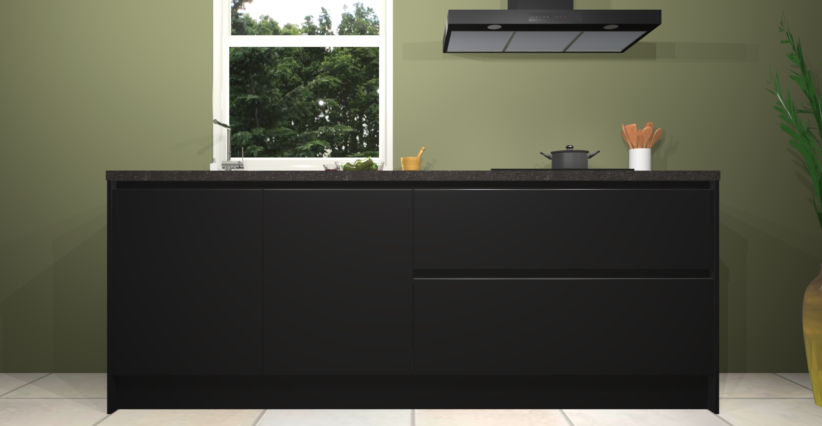 De Zwarte greeploze keuken Monaco heeft voldoende opbergruimte om uw keukenbenodigdheden georganiseerd en netjes te houden. Geniet van het gemak van de soft-close deuren, die deze stijlvolle look perfect afmaken. Maar dat is nog niet alles. Met de Zwarte greeploze keuken Monaco krijgt u maar liefst 5 ingebouwde apparaten: een oven, inductiekookplaat, afzuigkap, vaatwasser en koelkast. Deze kunnen gemakkelijk worden geüpgraded naar AEG als ze besteld zijn.