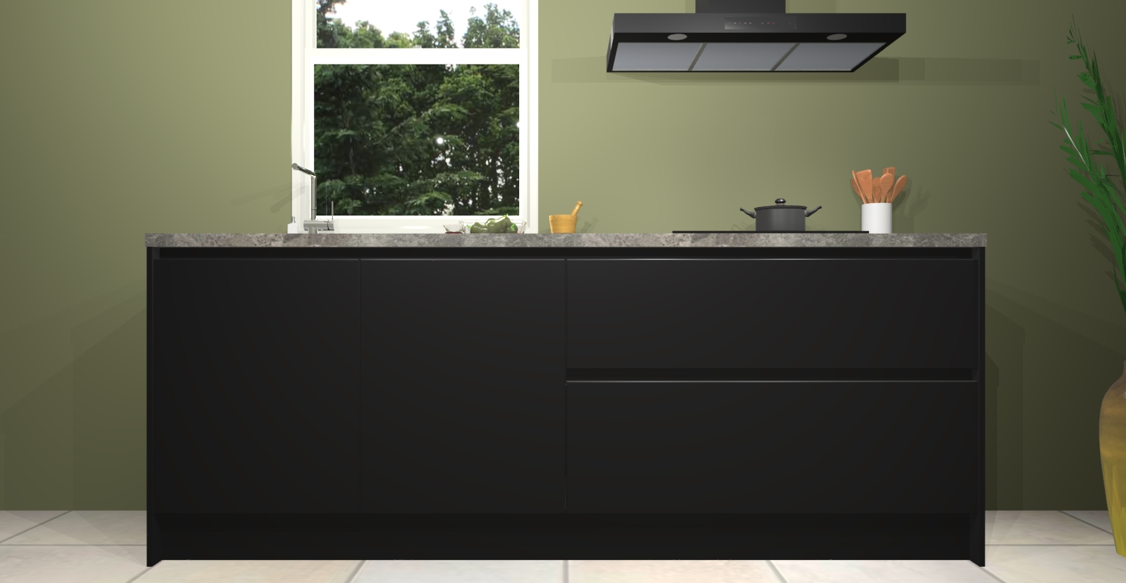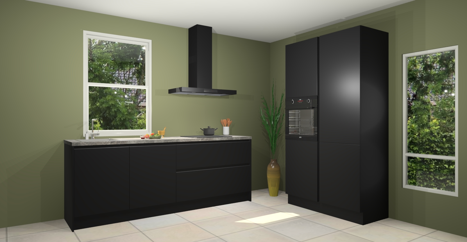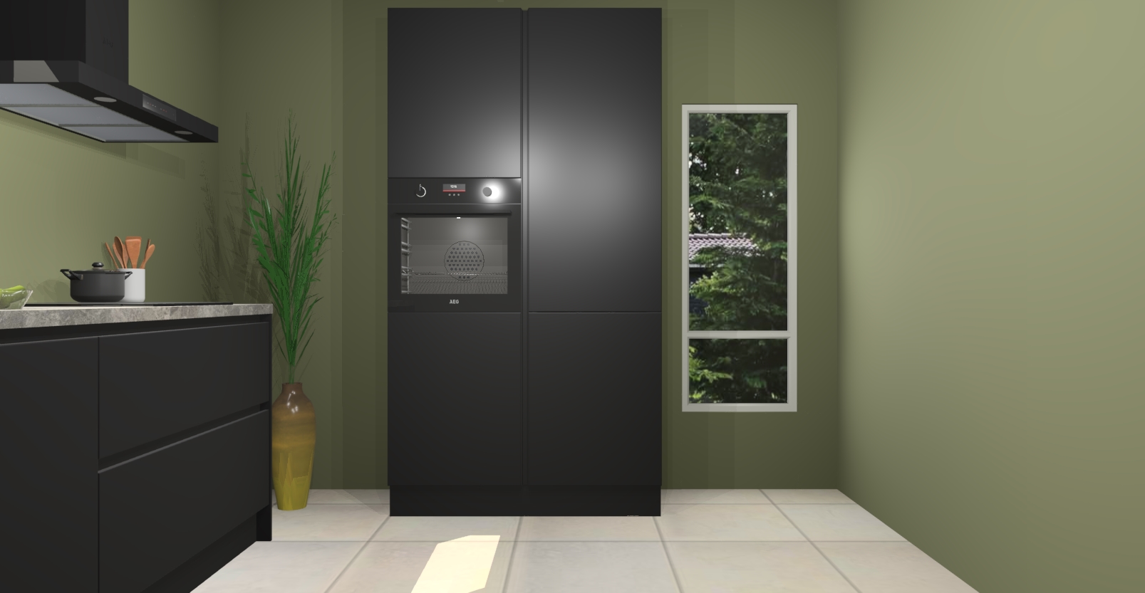 De Zwarte greeploze keuken Monaco heeft voldoende opbergruimte om uw keukenbenodigdheden georganiseerd en netjes te houden. Geniet van het gemak van de soft-close deuren, die deze stijlvolle look perfect afmaken. Maar dat is nog niet alles. Met de Zwarte greeploze keuken Monaco krijgt u maar liefst 5 ingebouwde apparaten: een oven, inductiekookplaat, afzuigkap, vaatwasser en koelkast. Deze kunnen gemakkelijk worden geüpgraded naar AEG als ze besteld zijn.