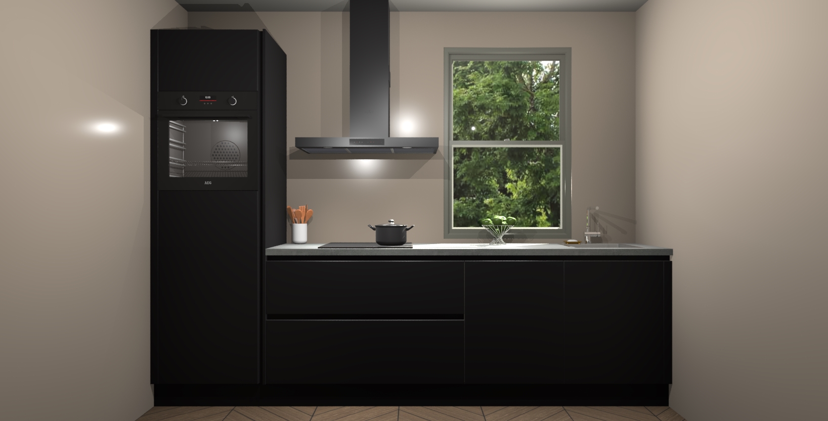 Maak kennis met de Zwarte greeploze keuken Riga - de perfecte combinatie van stijl en functionaliteit voor je keuken! Deze greeploze keuken heeft een strak zwart design en maakt uw gewenste look moeiteloos compleet. De soft close deuren bieden je een betrouwbare en handige manier om elk kastje te openen en te sluiten.