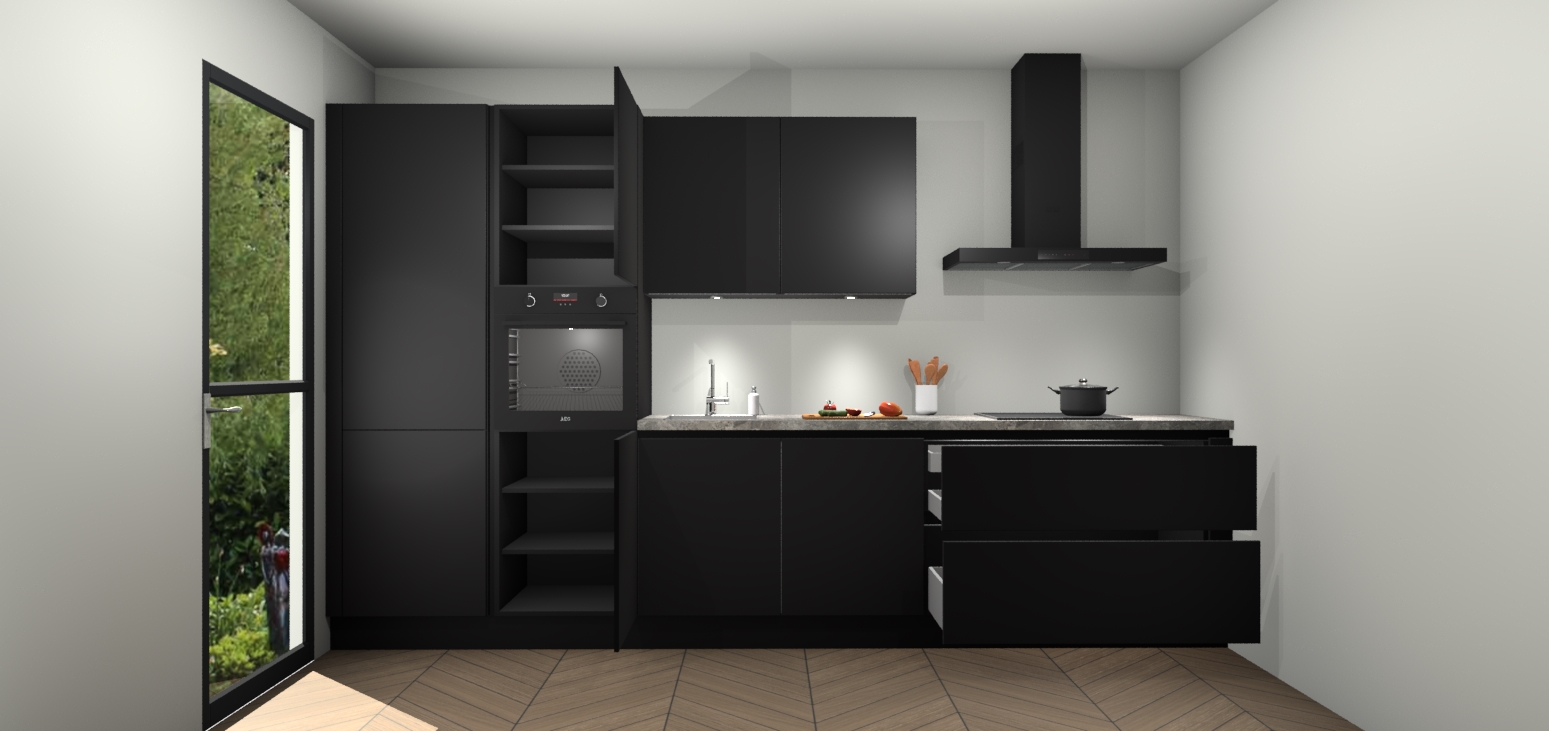 De Zwarte greeploze keuken Selfoss: waar tijdloze elegantie en robuuste constructie elkaar ontmoeten. Door de combinatie van luxe en veerkracht zal deze keuken u de komende jaren goed van dienst zijn. De prachtige zachte look zorgt voor een tijdloze esthetiek die niet zal slijten met de tijd, waardoor u een decoratieve toevoeging aan uw huis creëert. Onze hoogwaardige kasten zijn gebouwd om lang mee te gaan en is zeer duurzaam en bestand tegen krassen, waardoor het ideaal is voor drukke gezinnen.