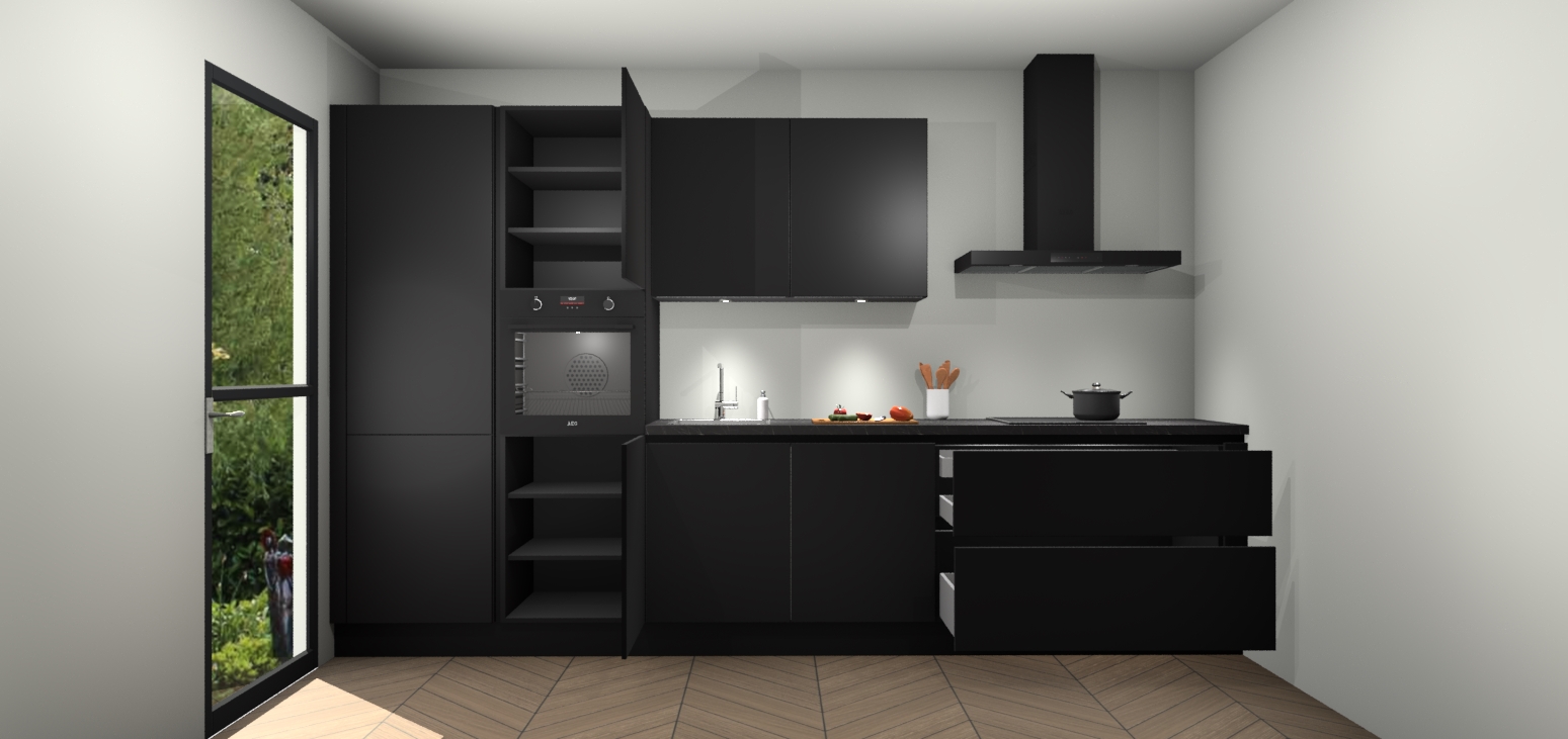 De Zwarte greeploze keuken Selfoss: waar tijdloze elegantie en robuuste constructie elkaar ontmoeten. Door de combinatie van luxe en veerkracht zal deze keuken u de komende jaren goed van dienst zijn. De prachtige zachte look zorgt voor een tijdloze esthetiek die niet zal slijten met de tijd, waardoor u een decoratieve toevoeging aan uw huis creëert. Onze hoogwaardige kasten zijn gebouwd om lang mee te gaan en is zeer duurzaam en bestand tegen krassen, waardoor het ideaal is voor drukke gezinnen.