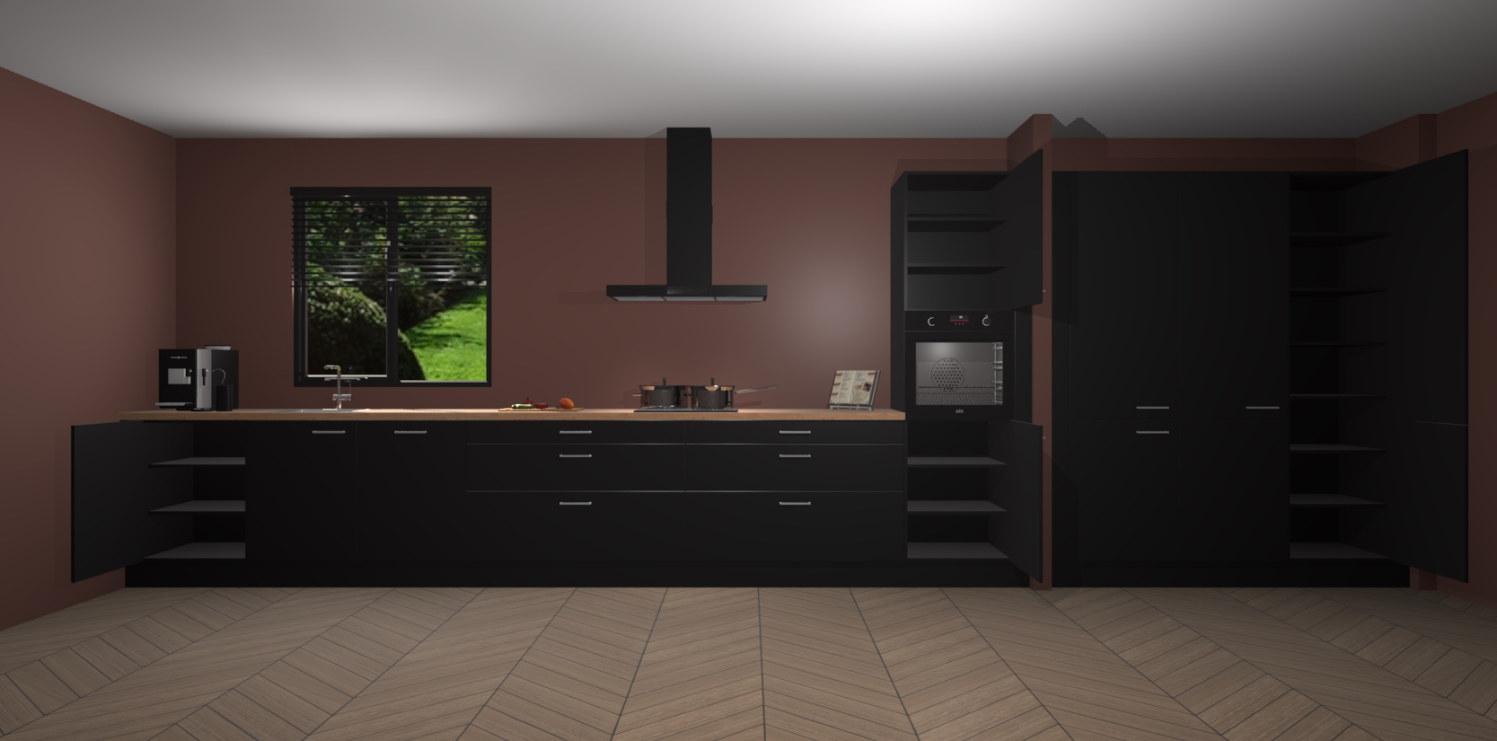 Een stijlvolle en praktische keuken als deze mag gezien worden. Dankzij de prachtige matte afwerking wordt de keuken gemakkelijk het middelpunt van uw huis - hij ziet er geweldig uit onder allerlei lichtomstandigheden, van dag tot nacht!